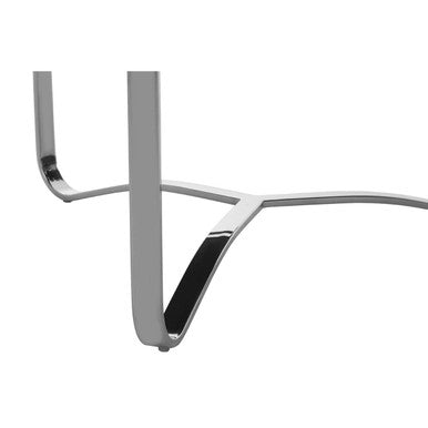 The Richmond round coffee table features a sturdy metal frame in mirrored silver polish which will add a touch of modern glam to the interior space. A renewable pine wood top in natural finish neatly sets on its rim that boasts light wooden hues. The gentle curves and interconnection of legs at the base give it a stylish appearance.