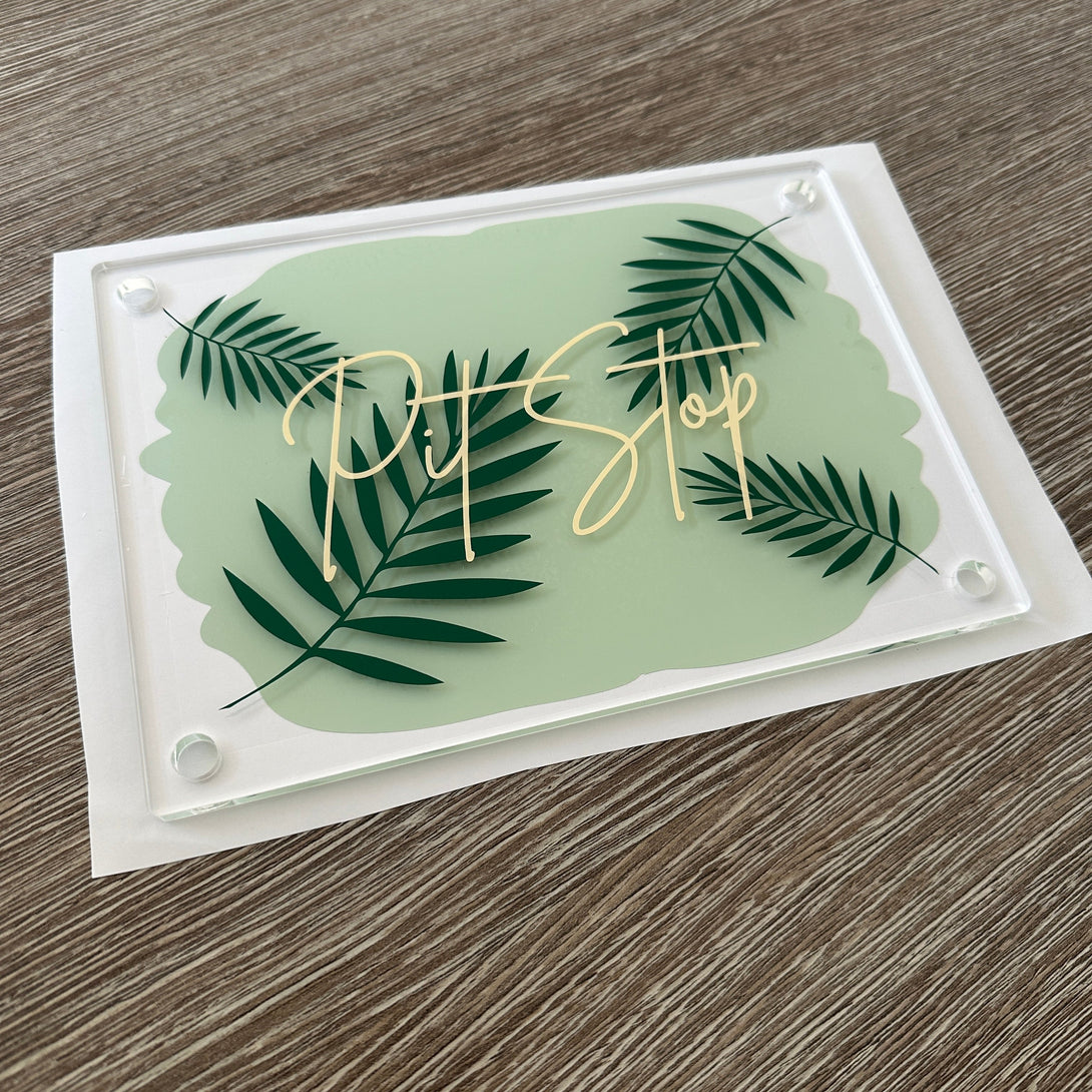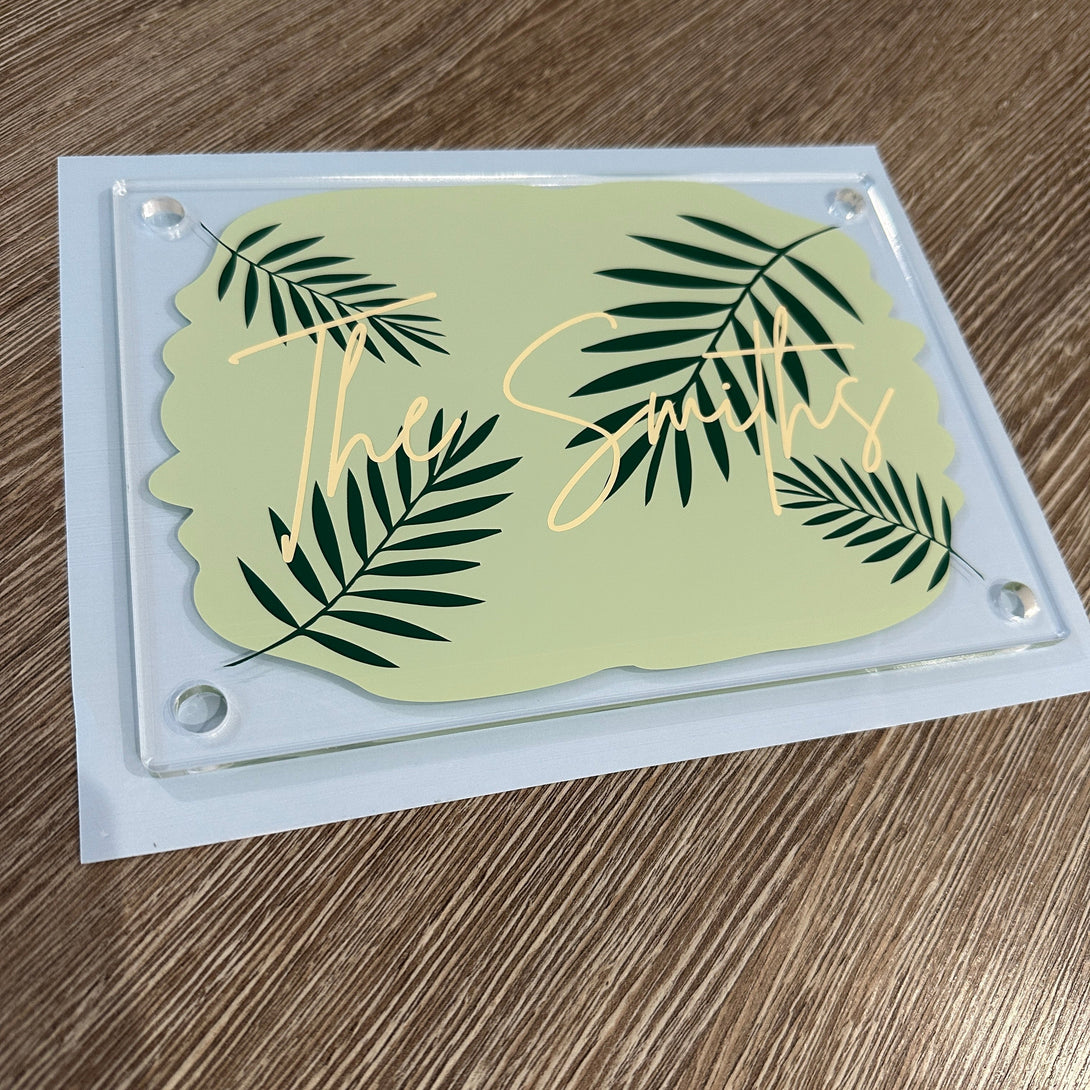 Sage Green Palm Leaf Design House Name/Number High Quality Acrylic Outdoor Or Inside Sign Including Fixtures & Standoffs - Assorted Colours & Fonts (See Images)