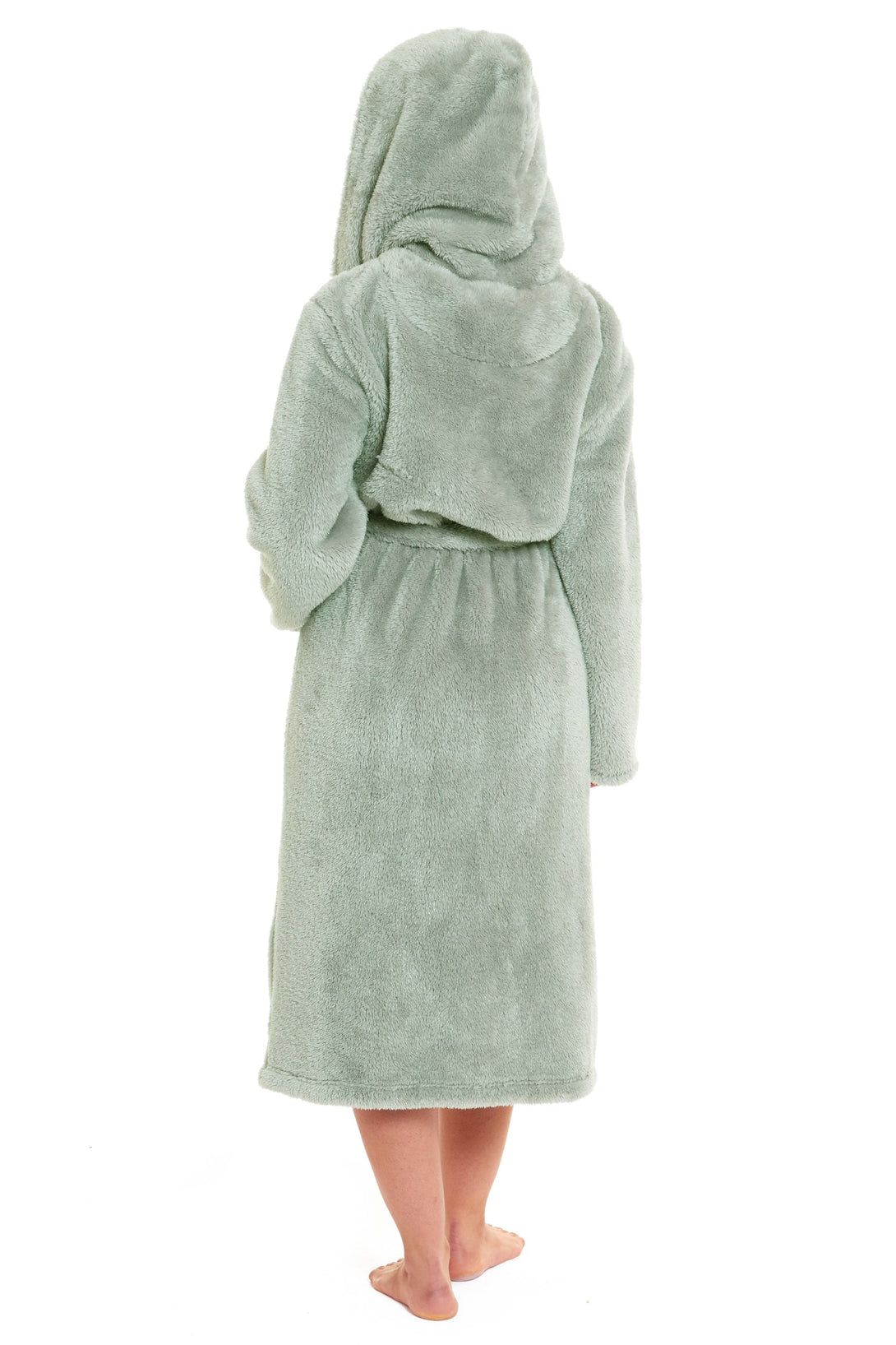 Women's Sage Green Snuggle Fleece Touch Hooded Robe Luxurious Soft Loungewear Cosy Durable Dressing Gown UK Sizes 8-22 by Daisy Dreamer