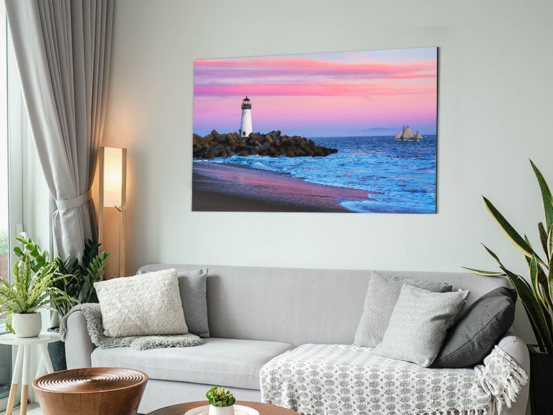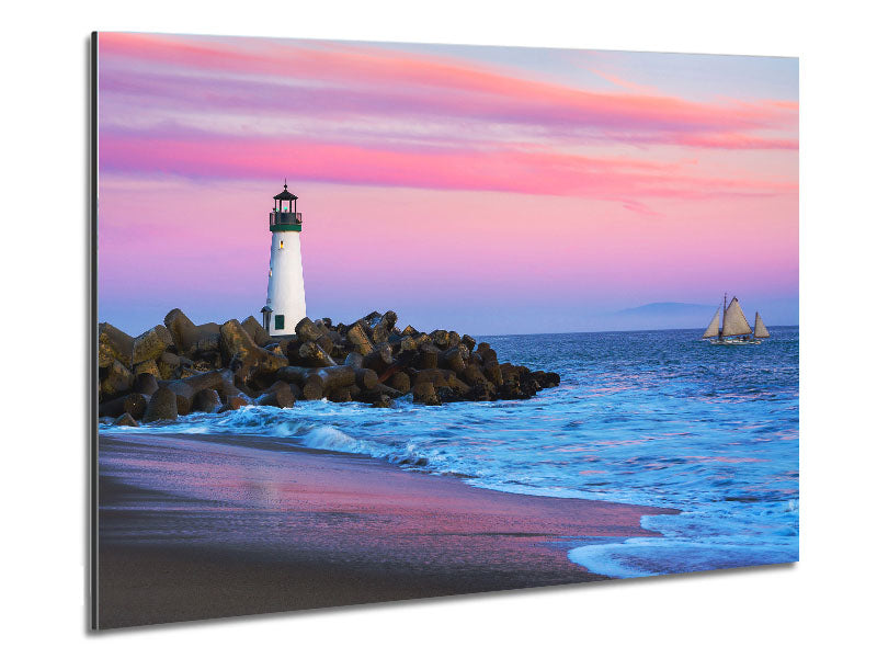 Sailboat Lighthouse Printed on brushed aluminium dibond. A modern way to display art and easy to maintain.