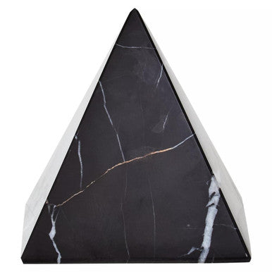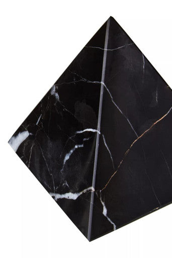 The Salmo black marble pyramid ornament features sleek white veining which adds to the contemporary aesthetic.