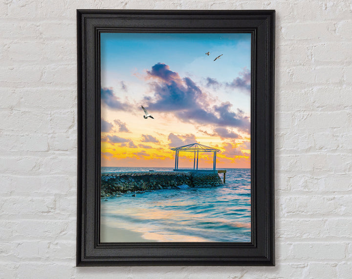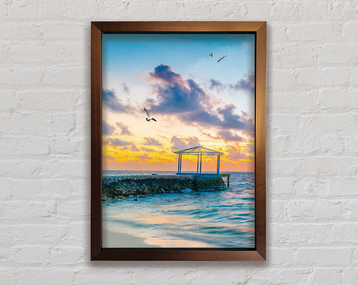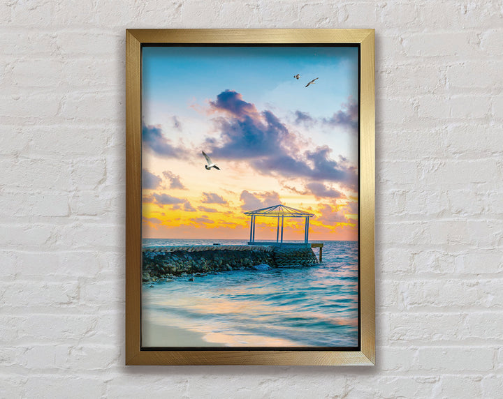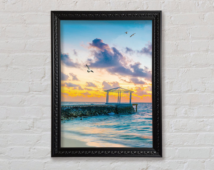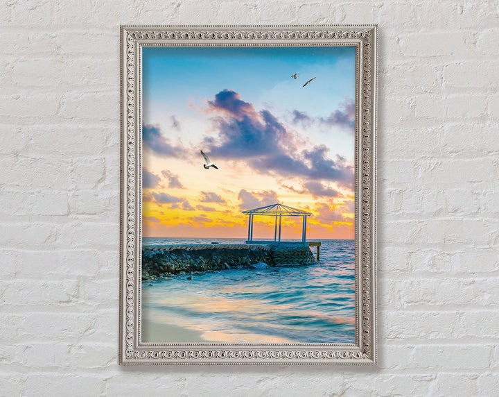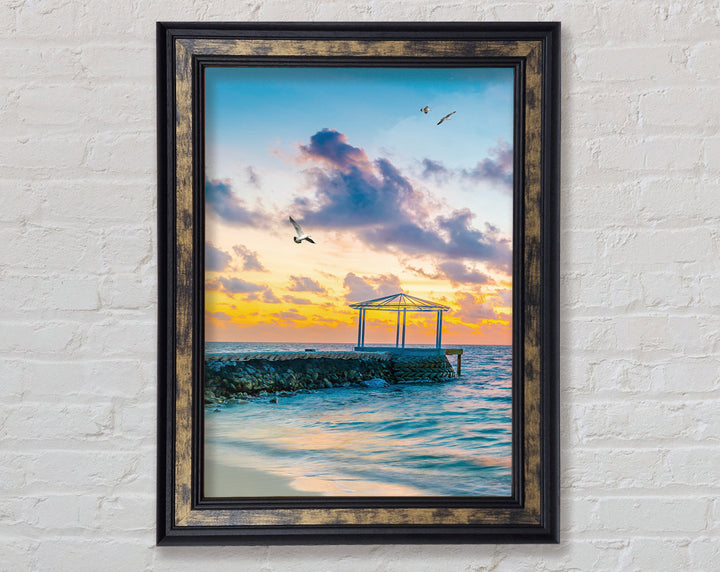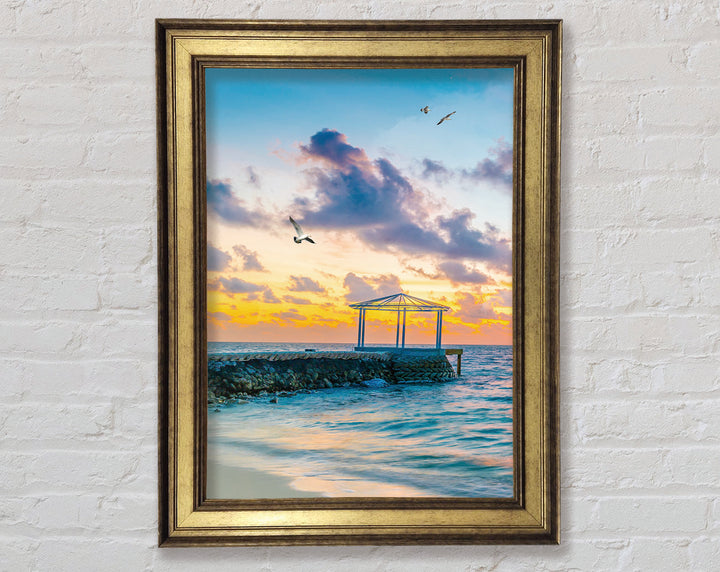 Seascape Sunset Gull Framed Print