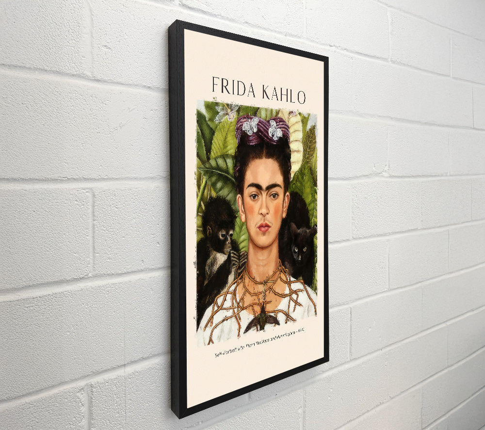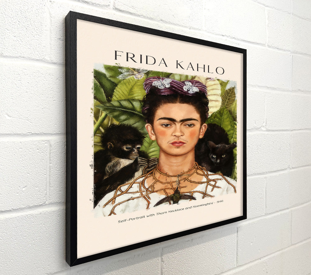 Self-Portrait With Thorn Necklace And Hummingbird By Frida Kahlocanvas square canvas, printed on coated polyester canvas. Mounted on to a 44mm box frame, ready to hang.