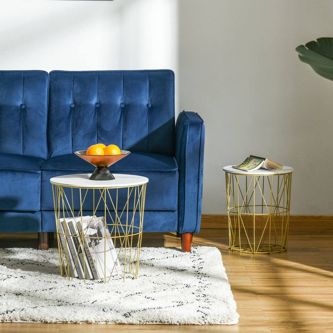 Bring beauty into your everyday life with these two accent tables from HOMCOM. Both come with a removable table tops, lifting to reveal handy inner storage - books, magazines, blankets, toys, etc. Steel frame, made into a unique criss-cross design, finished in a luxe gold tone. Enjoy as either a side, coffee or bedside table.