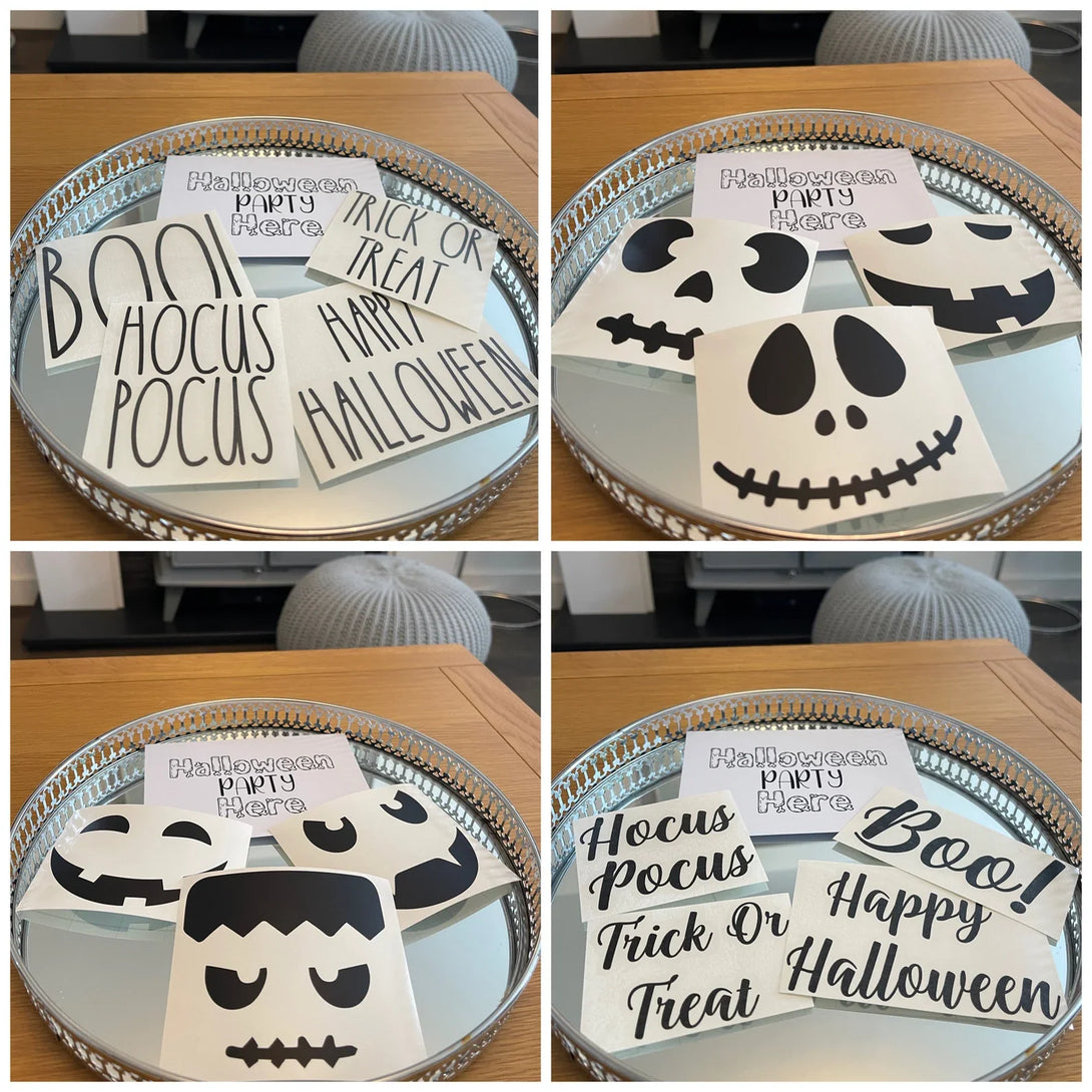 Sets Of 3/4 Black Assorted Font Or Face Halloween Pumpkin Window Door Halloween Sticker Labels