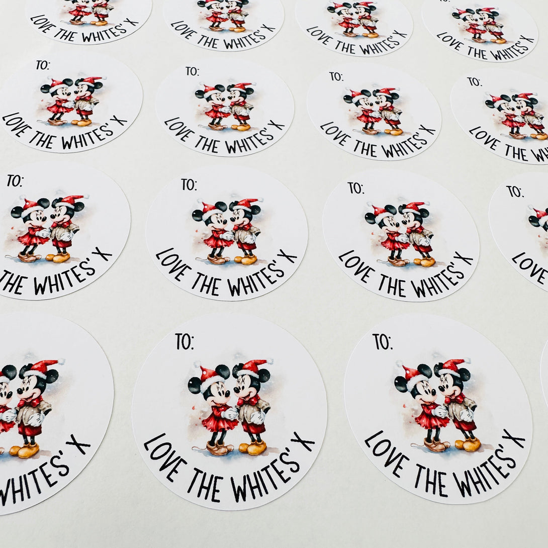 Sheet Of 24 Personalised Name Or Surname Cartoon Mouse Christmas Present Stickers Gift Labels Christmas stickers