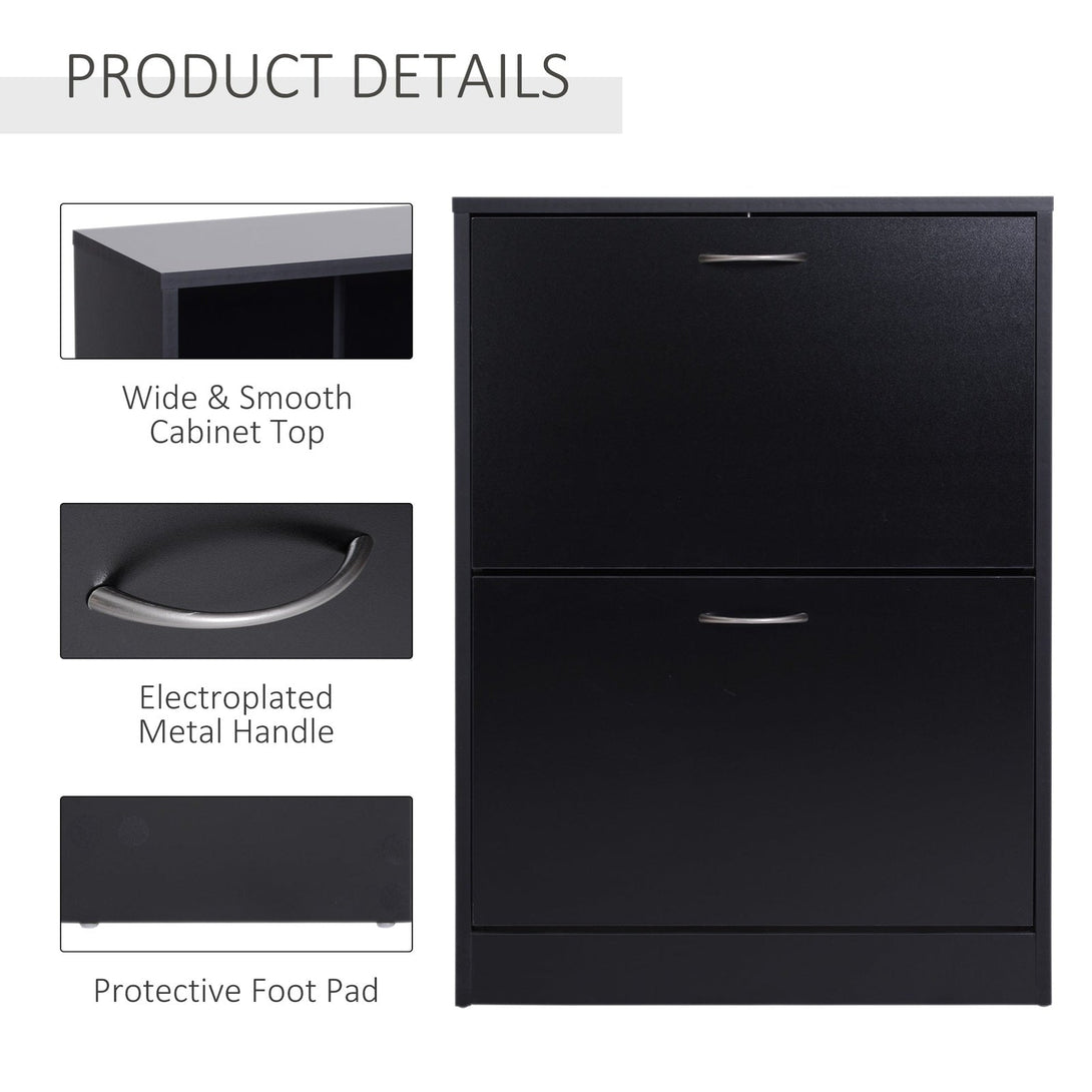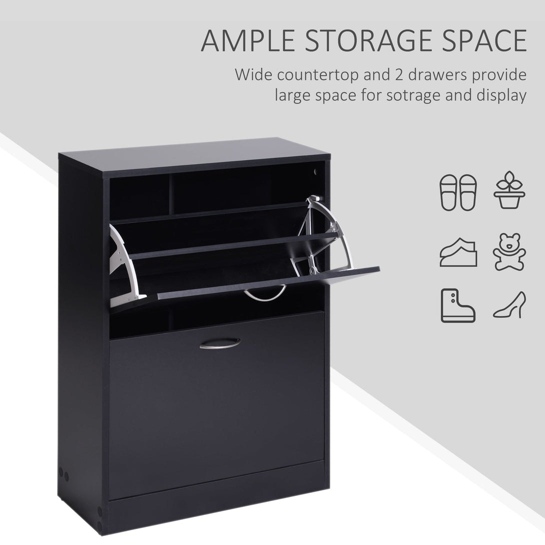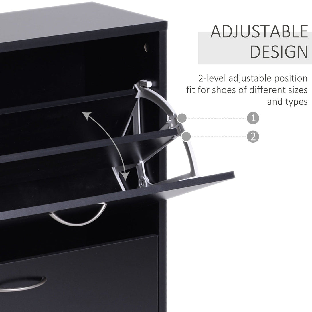 Shoe Cabinet Storage Cupboard 2-Tier Wood Tipping Bucket Modern Hall Organizer With Drawer Adjustable Shelf Large-Capacity Black