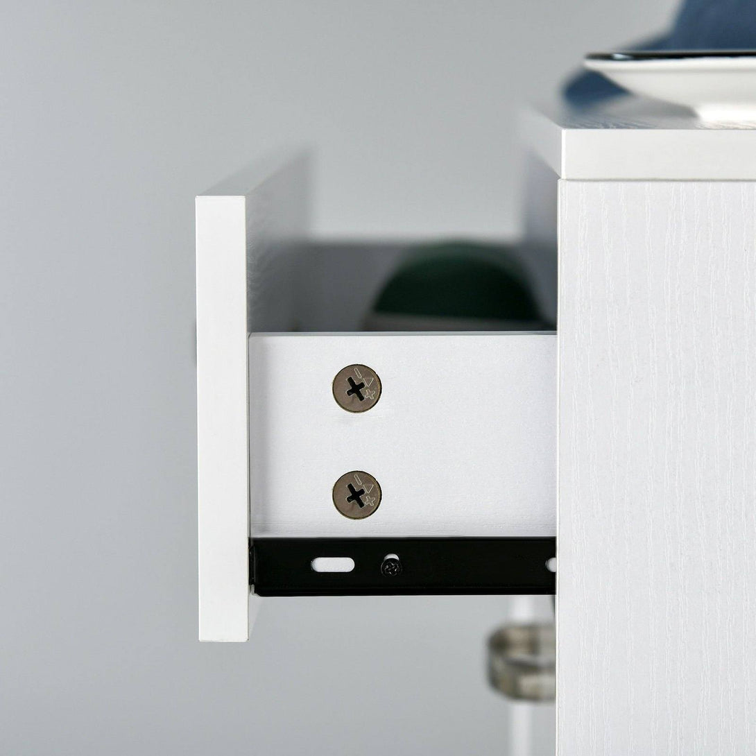 • Features a slide-out drawer and three tipping drawers, plenty of storage