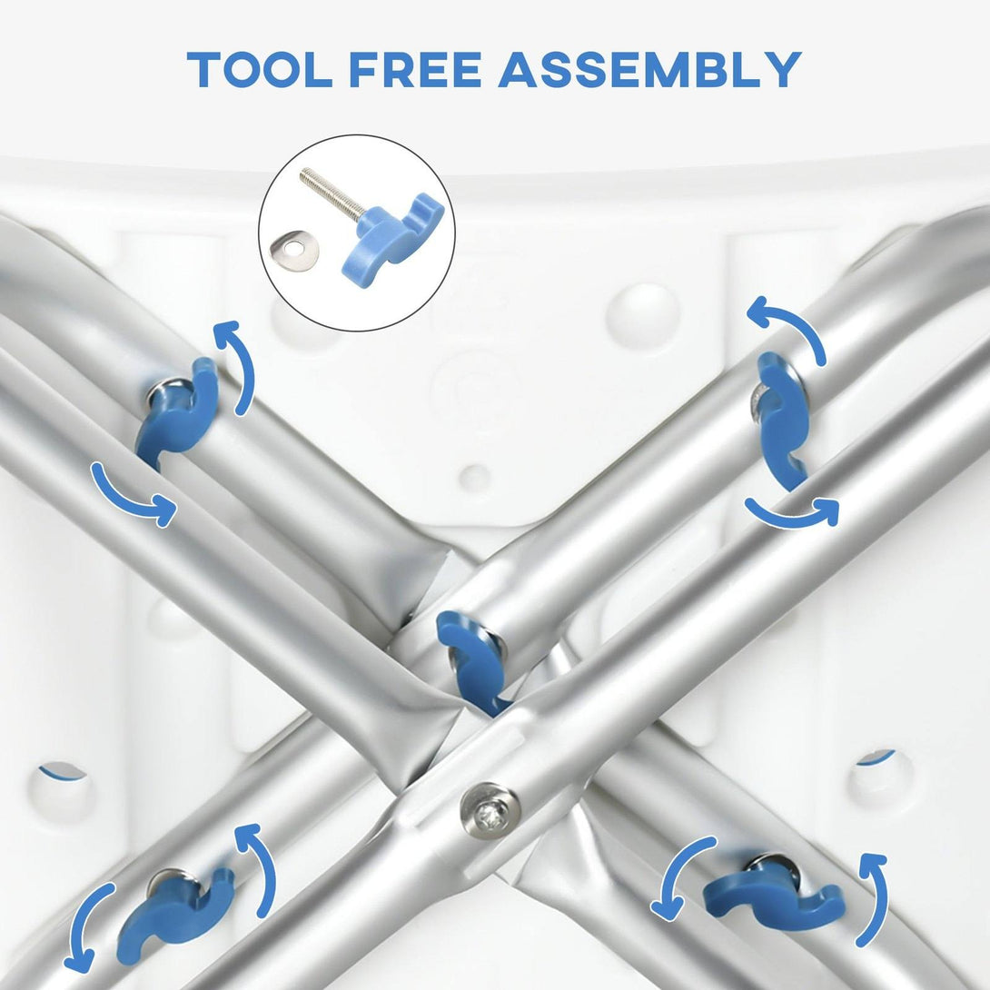 - Its compact design allows you can sit tall even in small bathrooms. - Easy to carry with a built-in handle, and the assembly is simple without tools