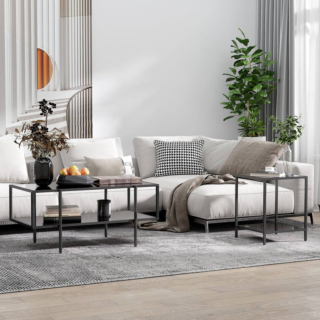 This HOMCOM side table with storage is a must for home and office living spaces. Two tiers means you can display flower vases, books, photos and other decorations - the perfect place for keeping all your favourite bits together. Both shelves are made from tempered glass for a polished look. The tempered glass is also strong and safe. Completed with adjustable feet so it stands balanced.