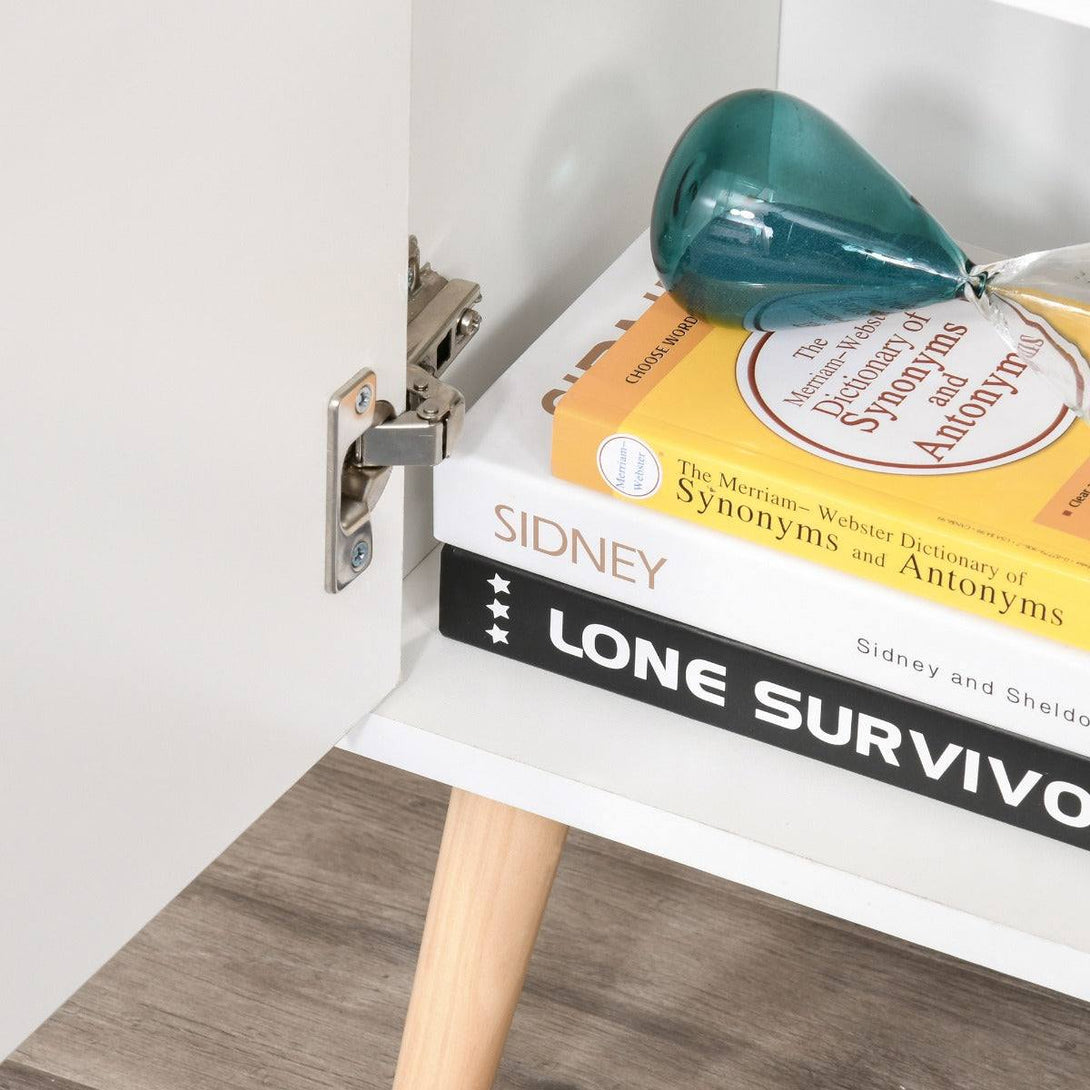 Keep your home stylish and the space tidy: look no further than this freestanding cabinet from HOMCOM. Cut to a clean boxy shape for simplicity, it comes with two cupboards and a top drawer, giving a moderate amount of storage. The white finish is clean, with the coloured door adding a unique point of difference so it stands out gently. Made from particle board, this piece is durable, finished with small wooden legs so it stands steady and back straps so it doesn't topple over.