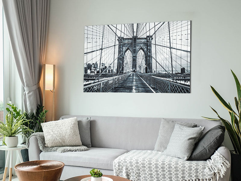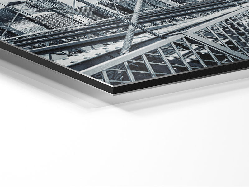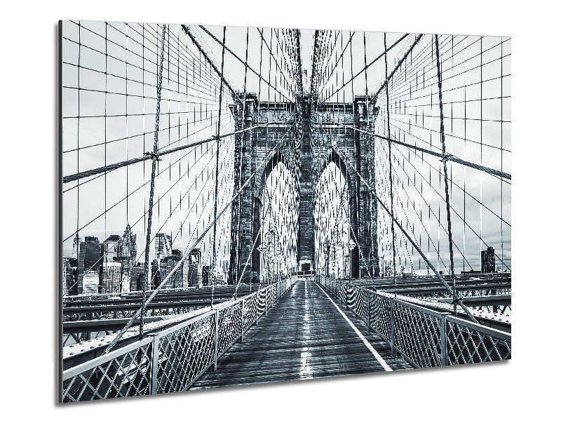 Silver Brooklyn Bridge Printed on brushed aluminium dibond. A modern way to display art and easy to maintain.