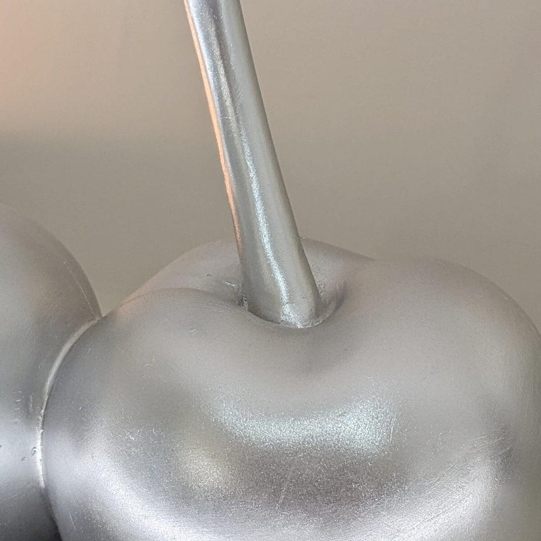 This unique decorative piece features two cherries on stork with leaf detail, in a luxurious silver finish.