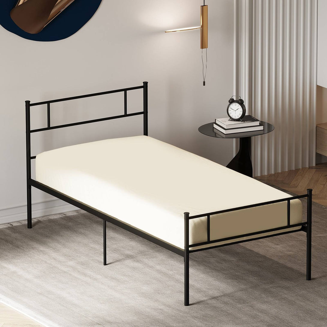 Single Metal Bed Frame Solid Bedstead Base with Headboard and Footboard