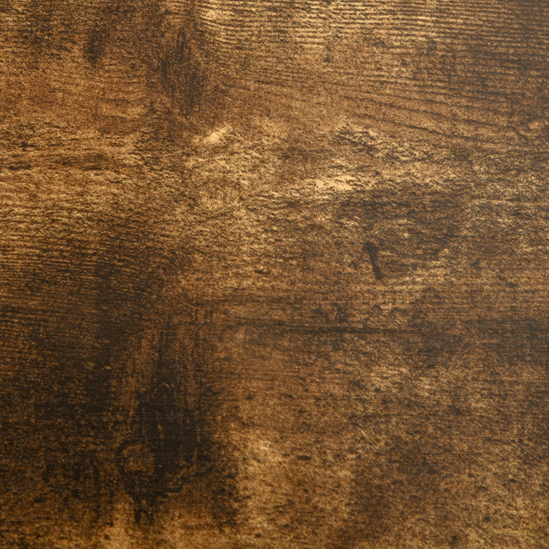 - Sturdy particle board construction in a smooth and sleek rustic brown finish