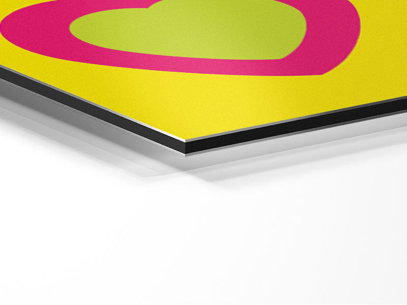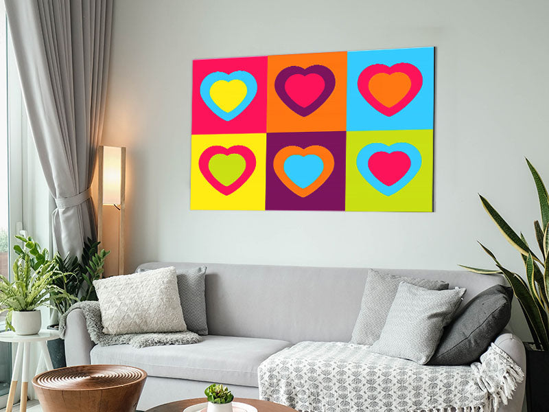Six Hearts Printed on brushed aluminium dibond. A modern way to display art and easy to maintain.