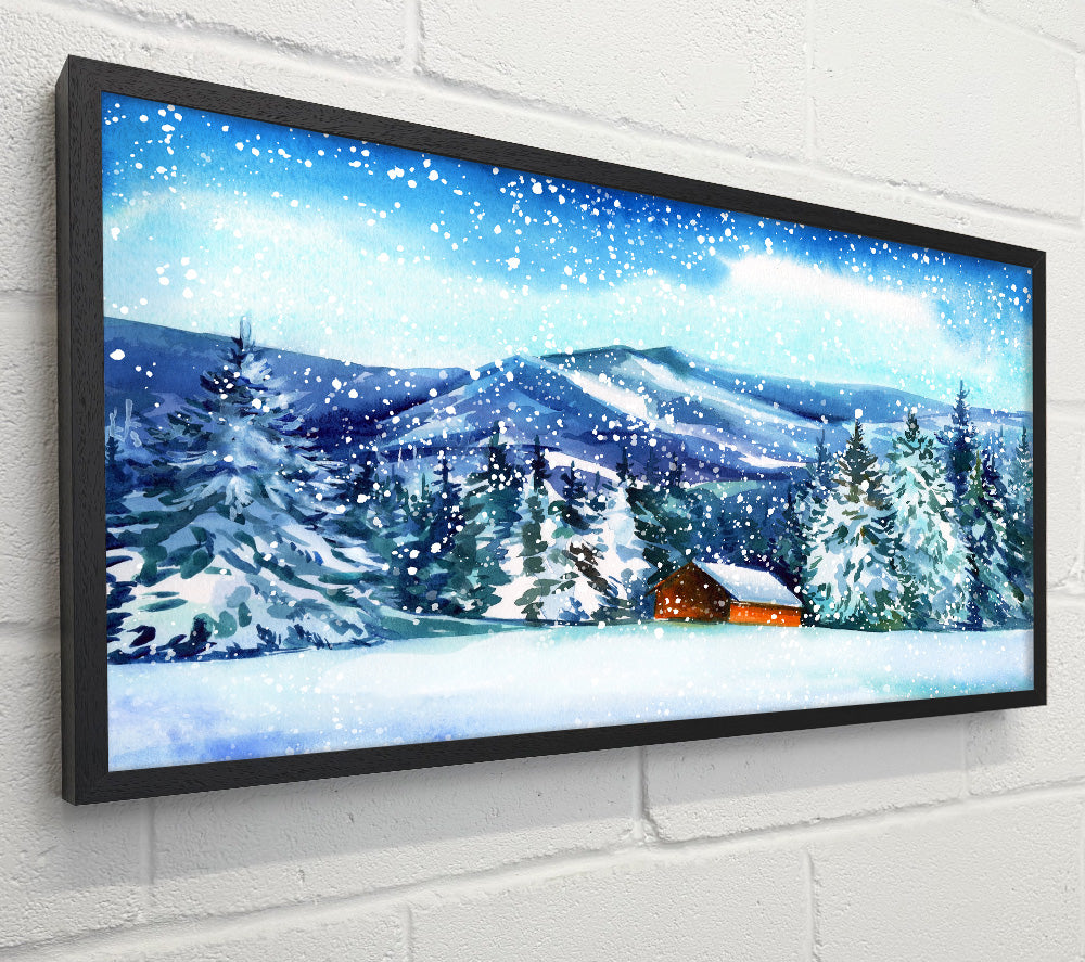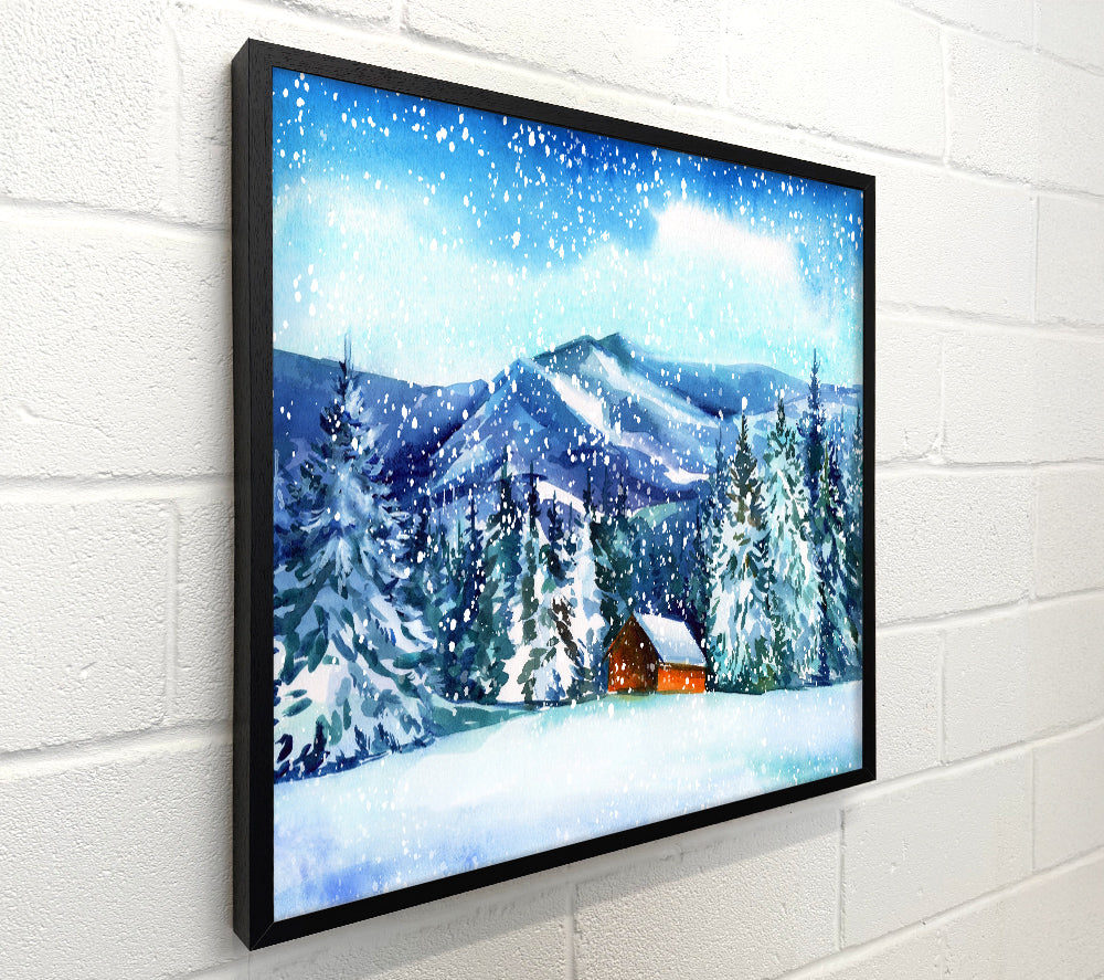 Snowy Cabin In The Mountains