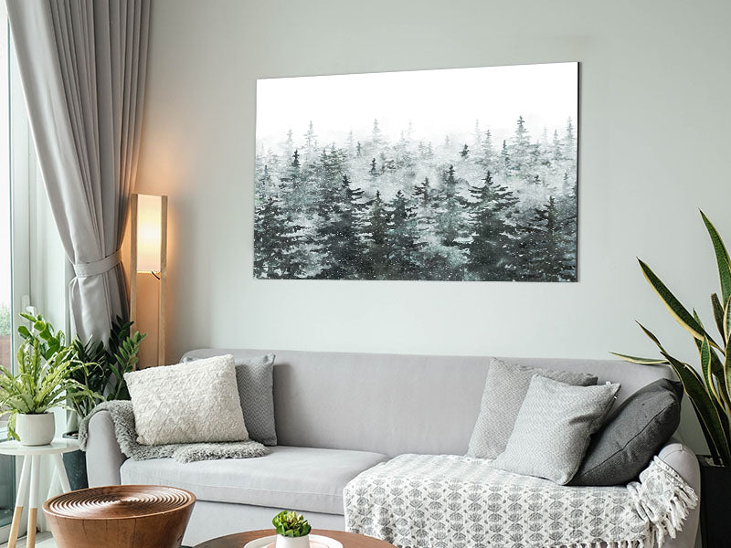 Snowy Top Trees Winter Printed on brushed aluminium dibond. A modern way to display art and easy to maintain.