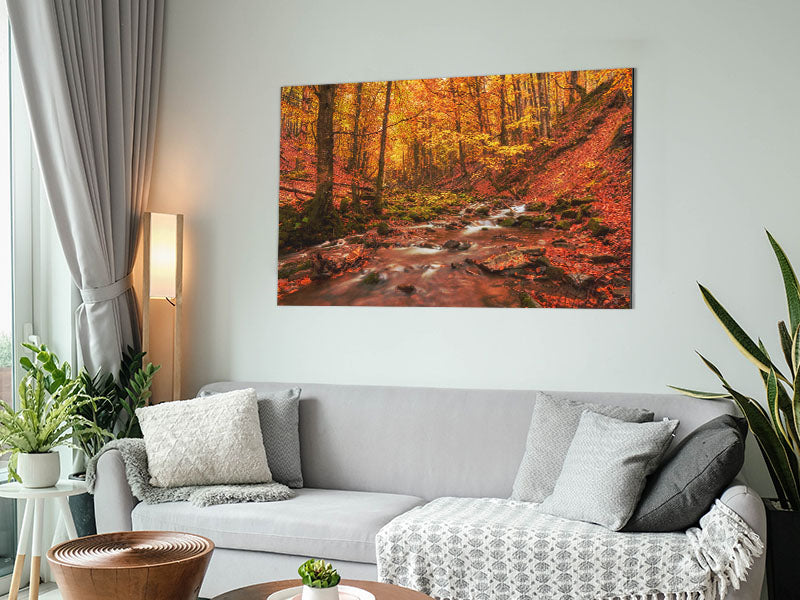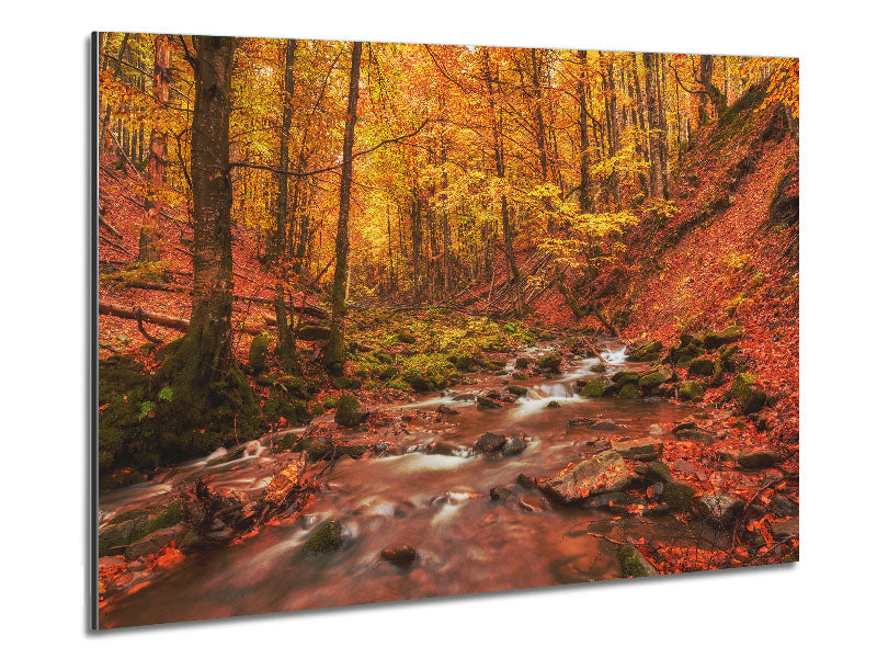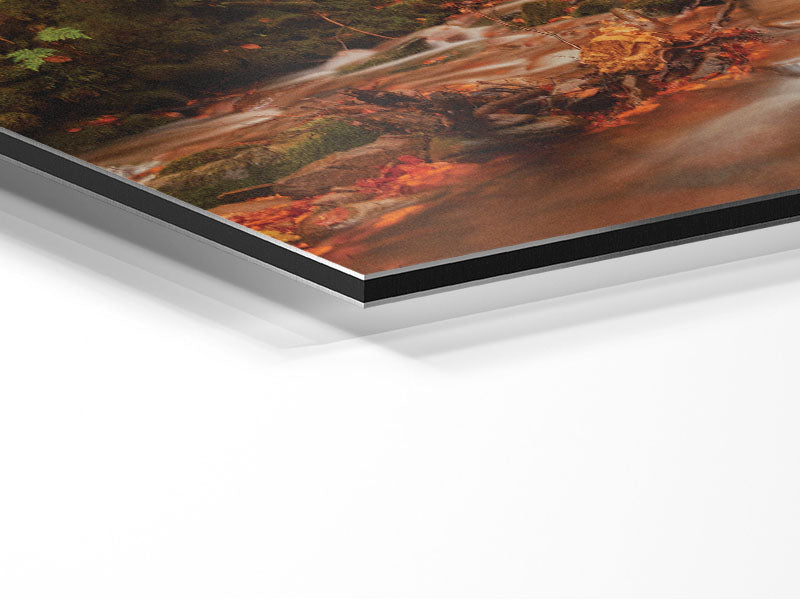 Soft trickling water through the trees Printed on brushed aluminium dibond. A modern way to display art and easy to maintain.