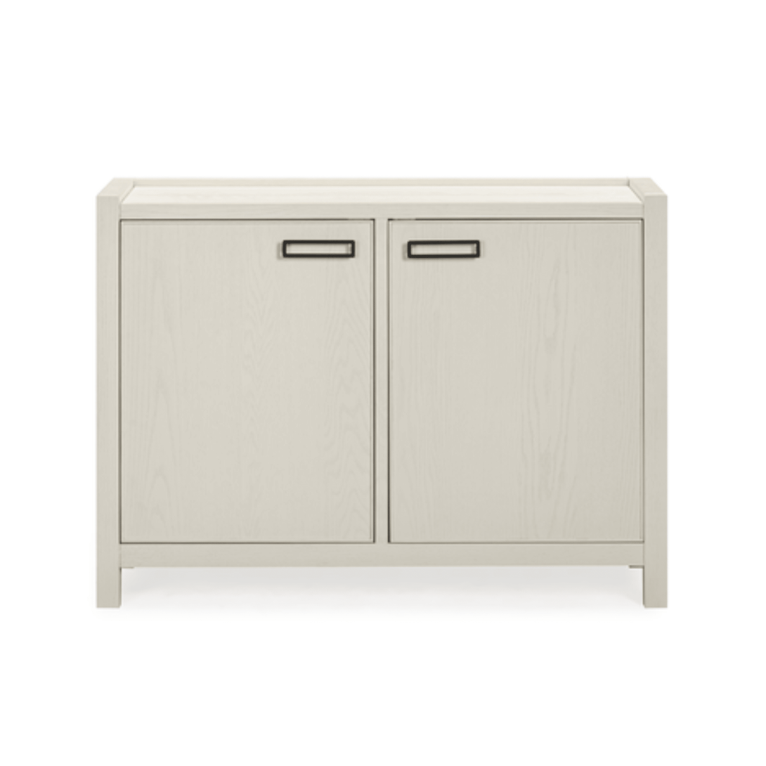 Finished in a sleek cream oak veneer with a choice of brushed metal handles, this sideboard adds a luxe touch to modern interiors.