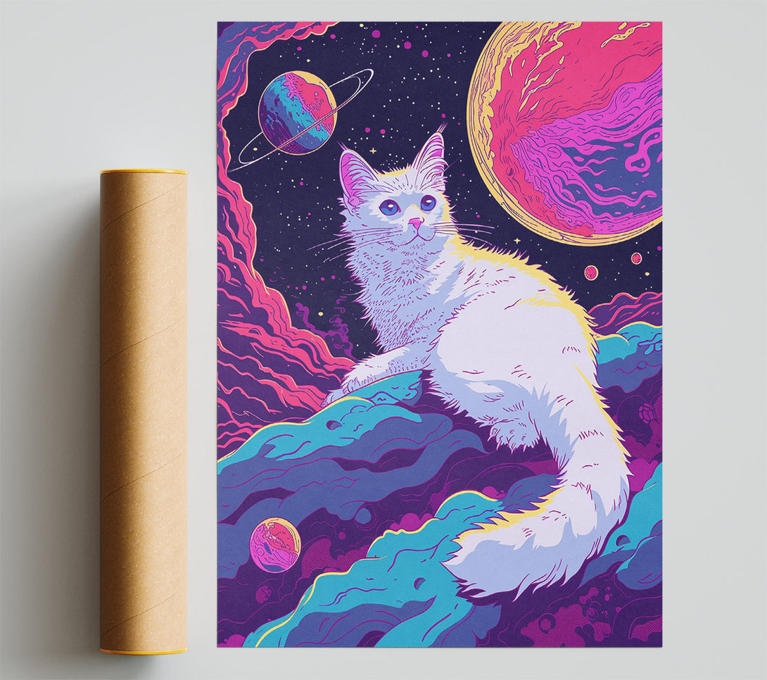 Space Cat Neon Giclee Print