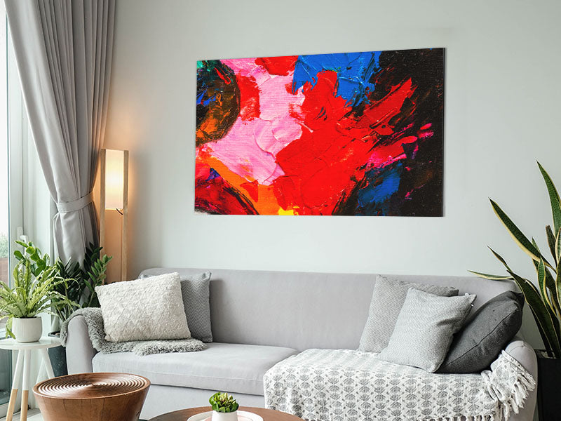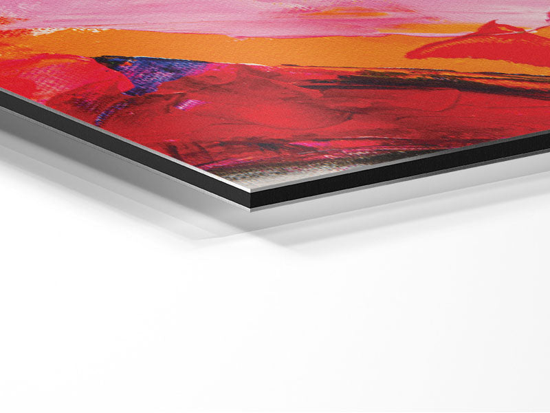 splashes of acrylic paint Printed on brushed aluminium dibond. A modern way to display art and easy to maintain.