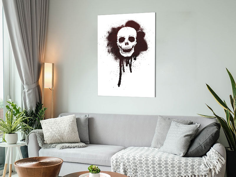 Spray Paint Skull Printed on brushed aluminium dibond. A modern way to display art and easy to maintain.