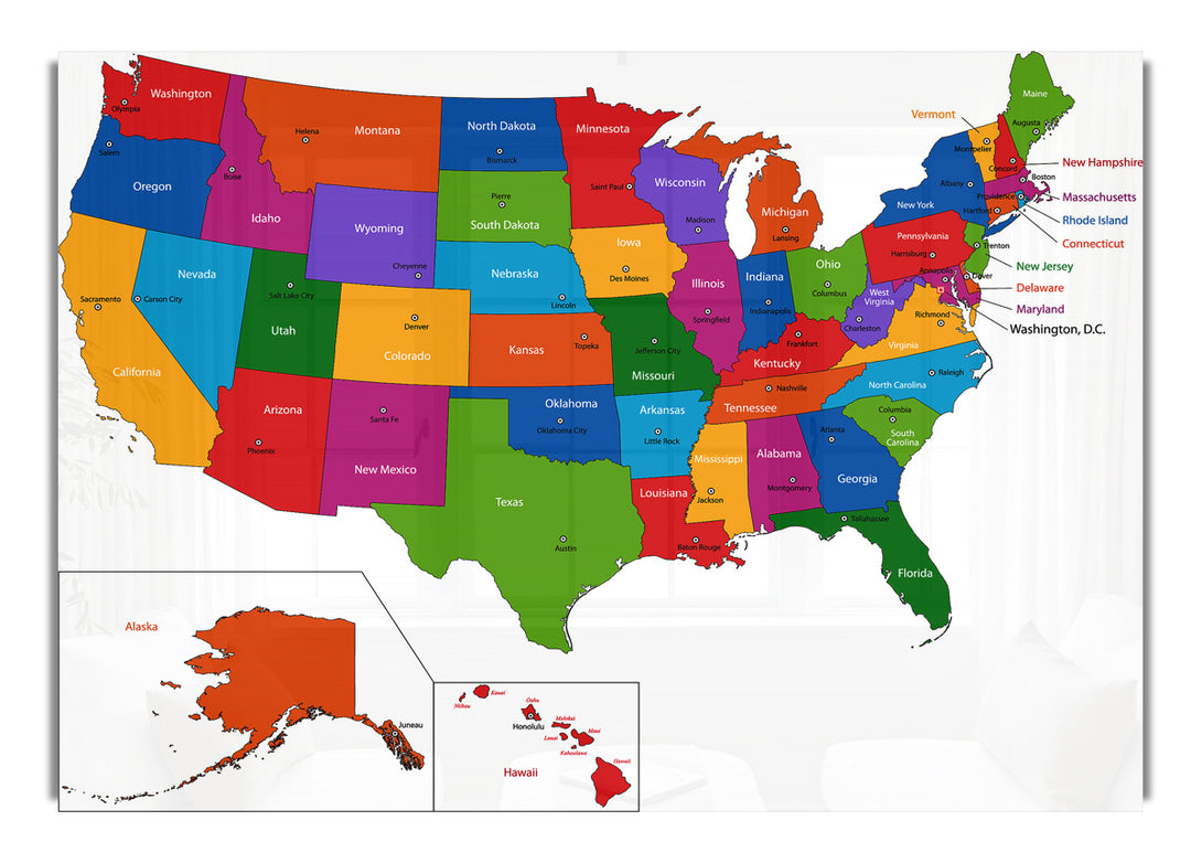 States Of America 4 acrylic print, UV printed onto 5mm thick acrylic glass. Comes with everything you need to hang on your wall.