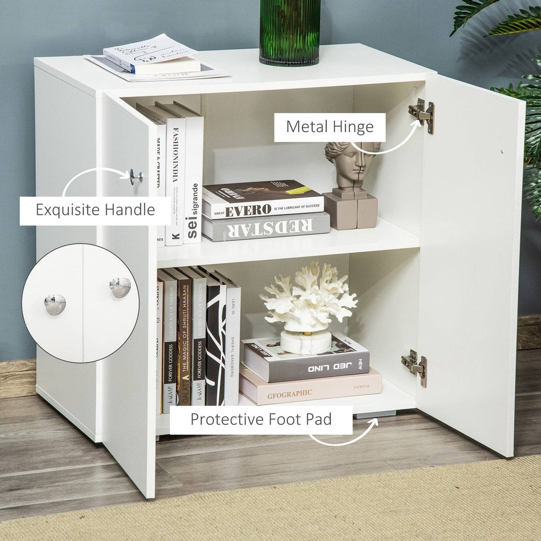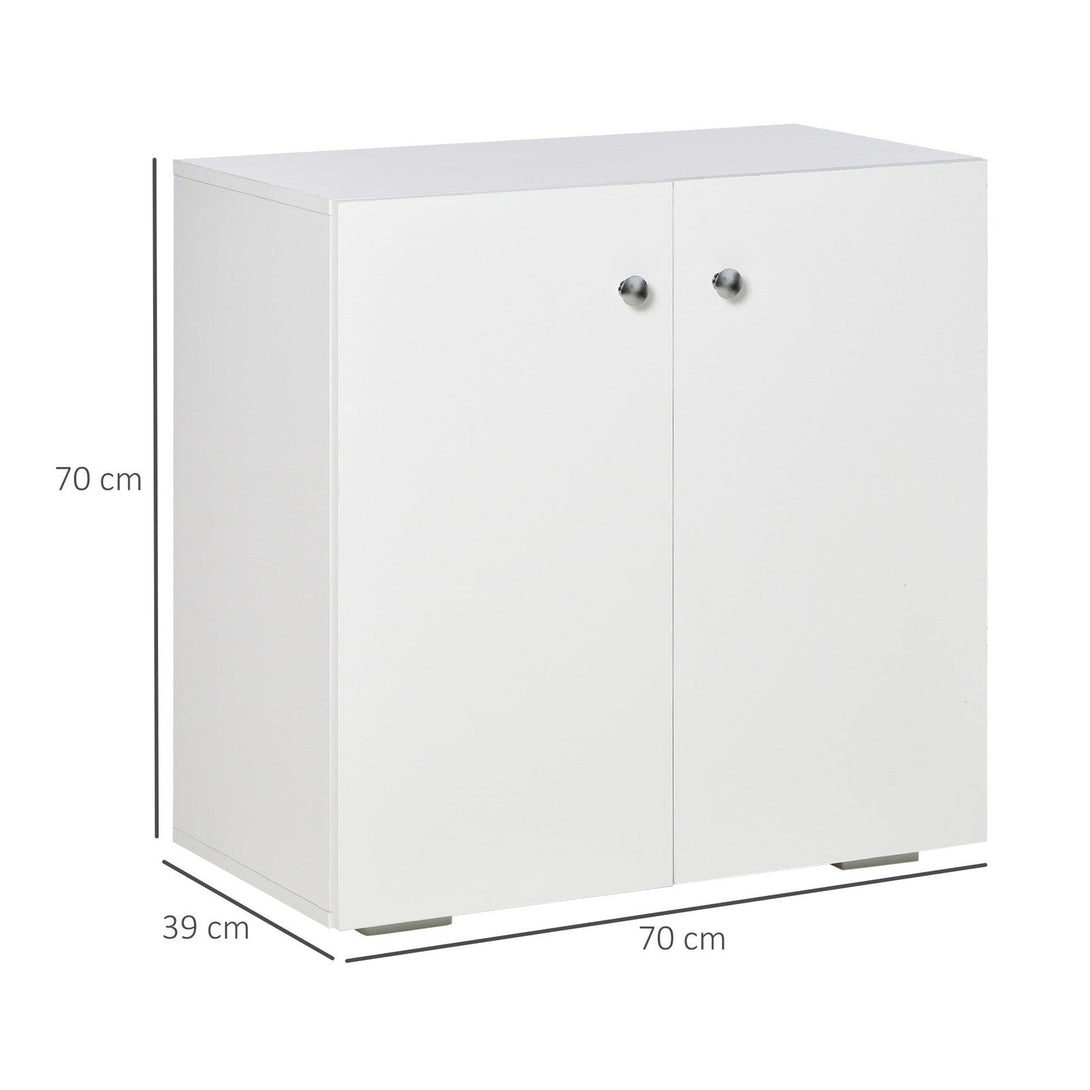 Keep your home organised with this stylish freestanding cabinet from HOMCOM. It can be used in any room, the two shelves will help it stay tidy and clutter-free. Use the spacious table top for displaying your favourite pieces, giving it a lovely decorative touch. Its all-white design can match any décor, whilst the particle board makes it easy to clean maintaining its fresh appearance. A modern cabinet that's useful and fashionable; a great addition to your home.