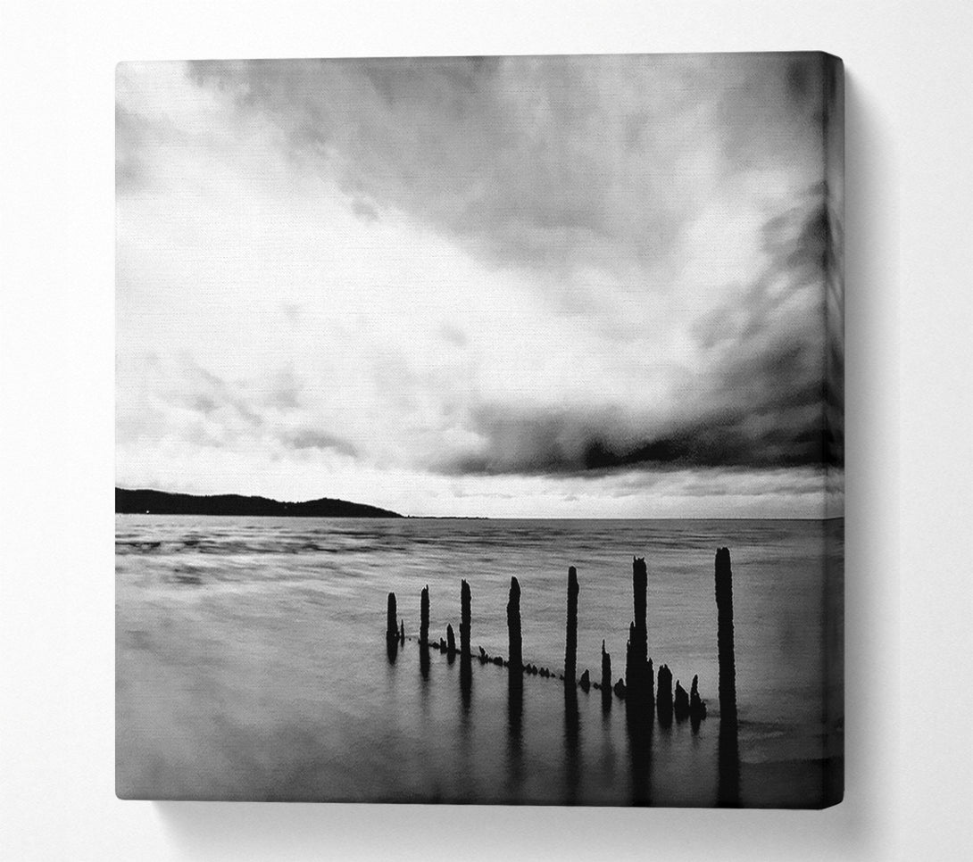 Storm Clouds Over The Ocean B n W Canvas Wall Art