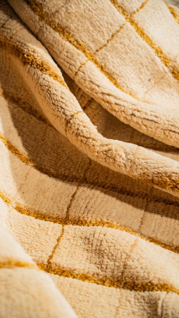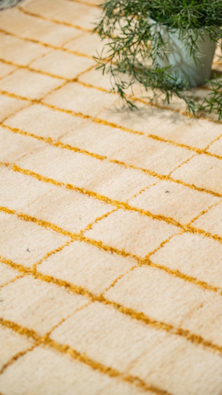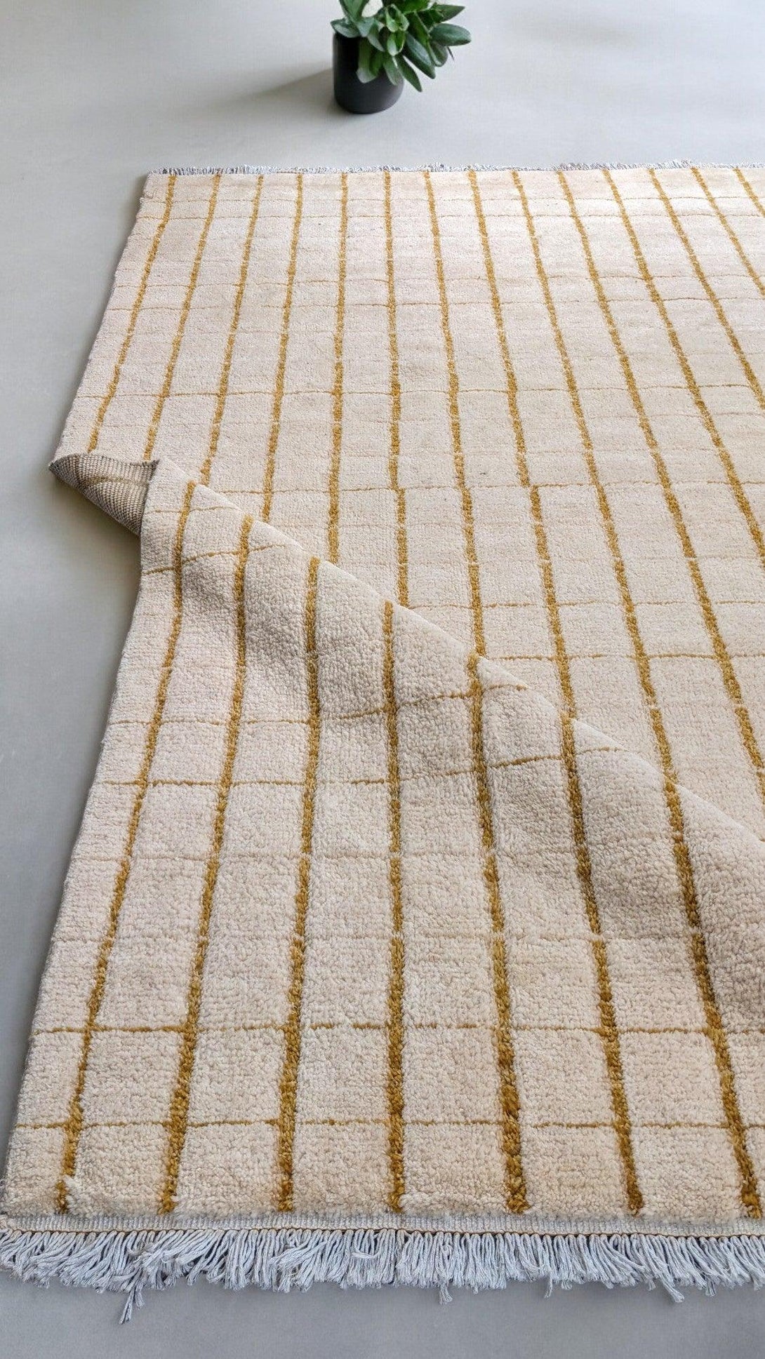 The Stormy Stripe Rug showcases timeless Nordic style with a hand-knotted wool blend. A simple grid pattern in neutral beige and off-white hues creates effortless sophistication, grounding any room with its minimalist, striped design and soothing colour palette.