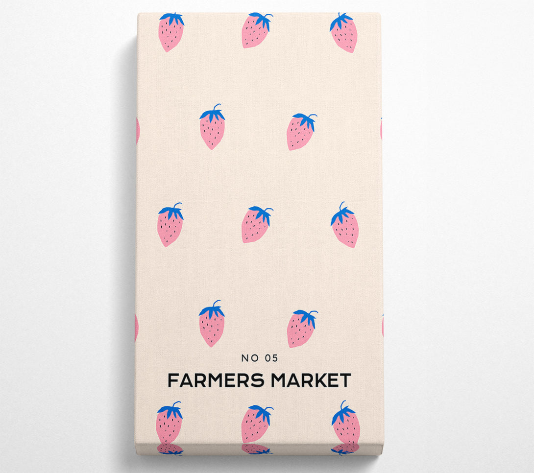Strawberries Farmers Market wide canvas, printed on coated polyester canvas. Mounted on to a 44mm box frame, ready to hang.