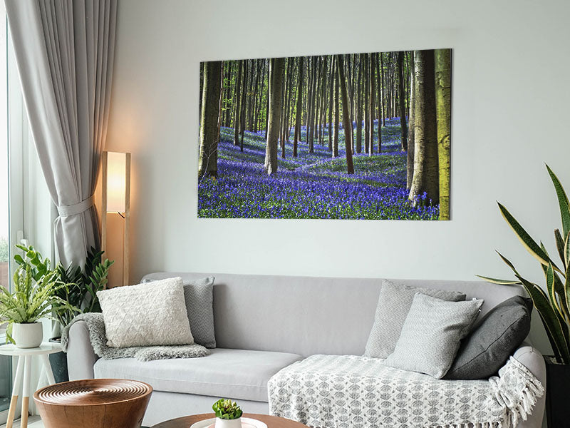 Stunning beautiful lilac woodland walk Printed on brushed aluminium dibond. A modern way to display art and easy to maintain.
