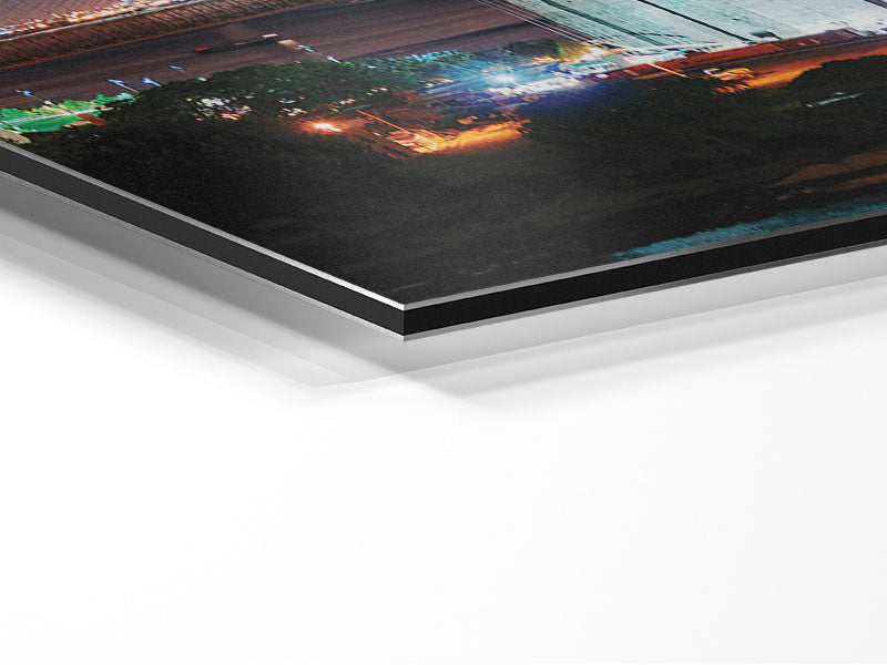 Stunning City Lights Over The Brooklyn Bridge Printed on brushed aluminium dibond. A modern way to display art and easy to maintain.