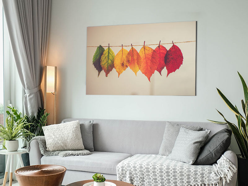 Summer to spring leaves Printed on brushed aluminium dibond. A modern way to display art and easy to maintain.