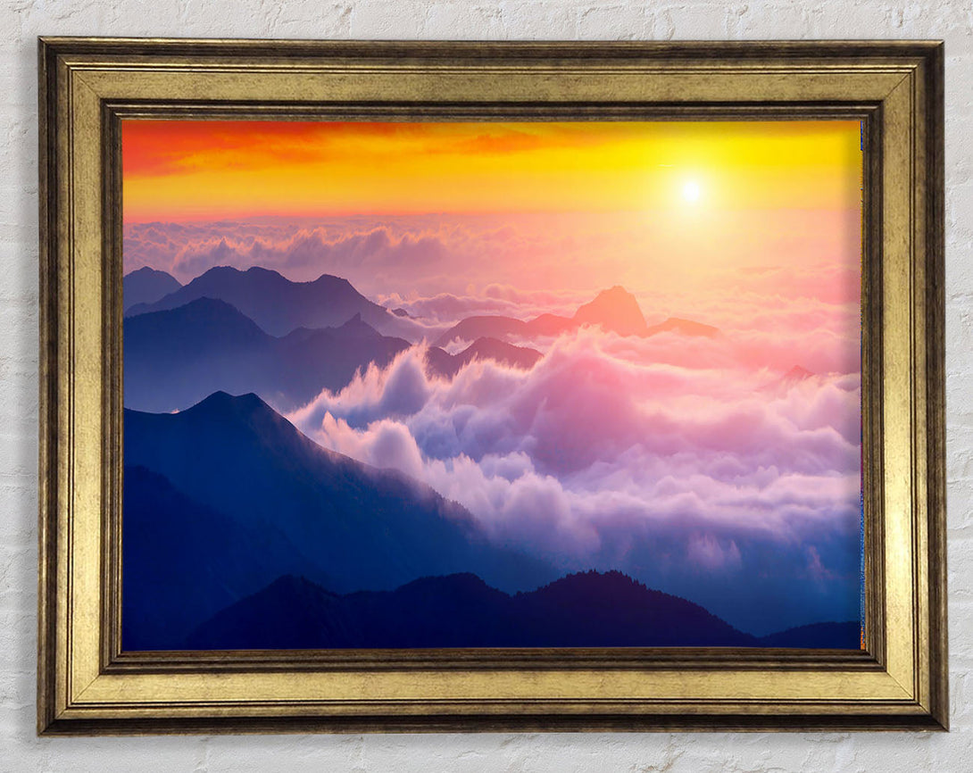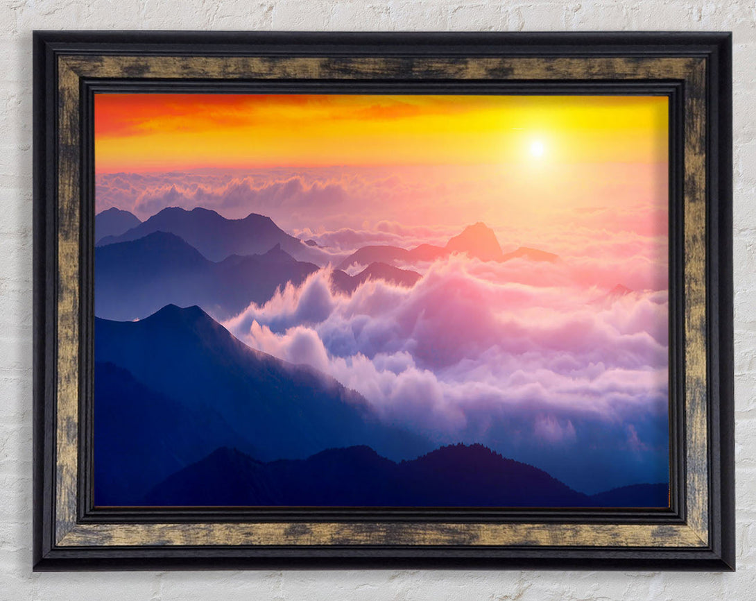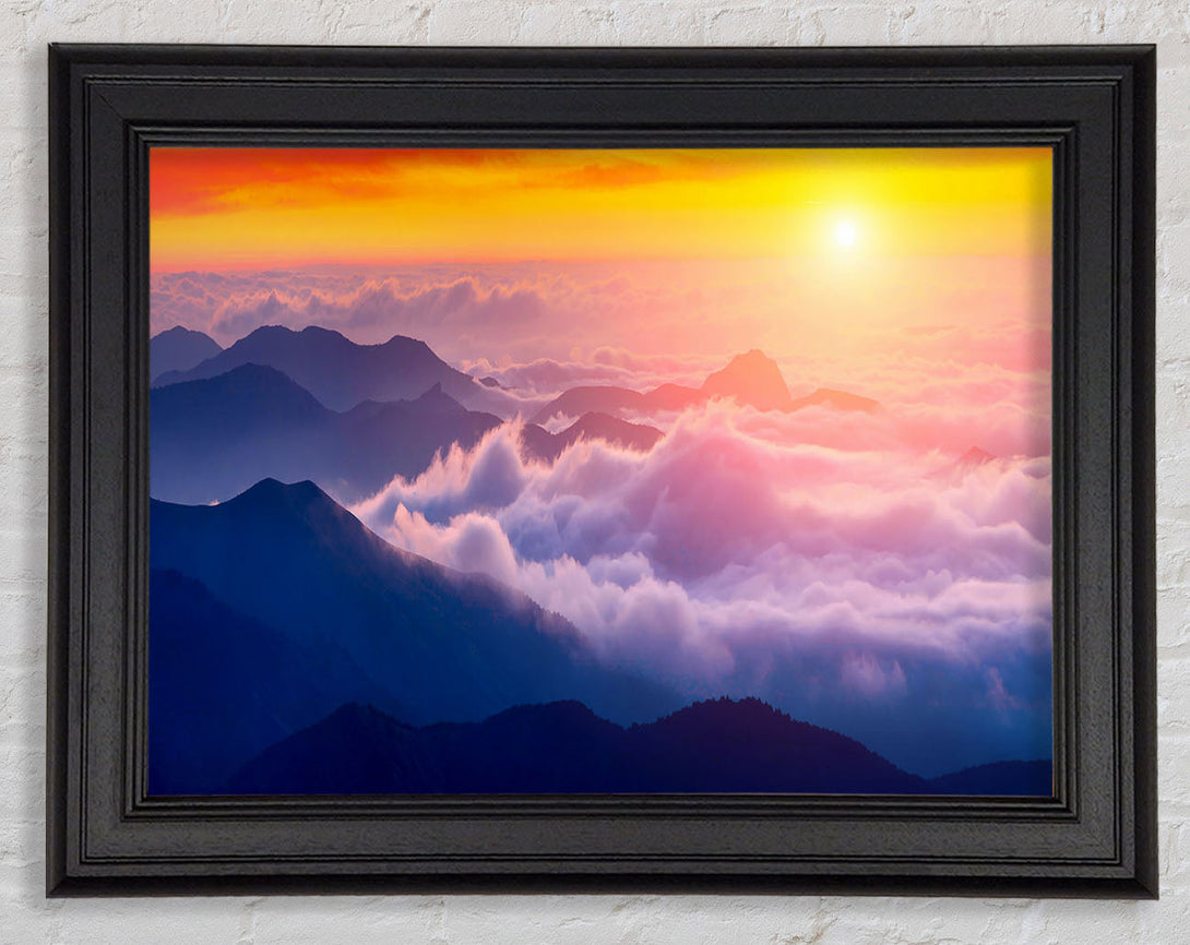 Sun Above The Mountain Clouds Framed Print
