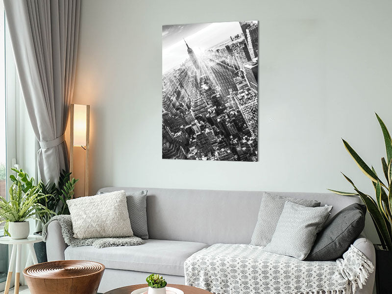 Sun Beams Through The Empire State Building Printed on brushed aluminium dibond. A modern way to display art and easy to maintain.