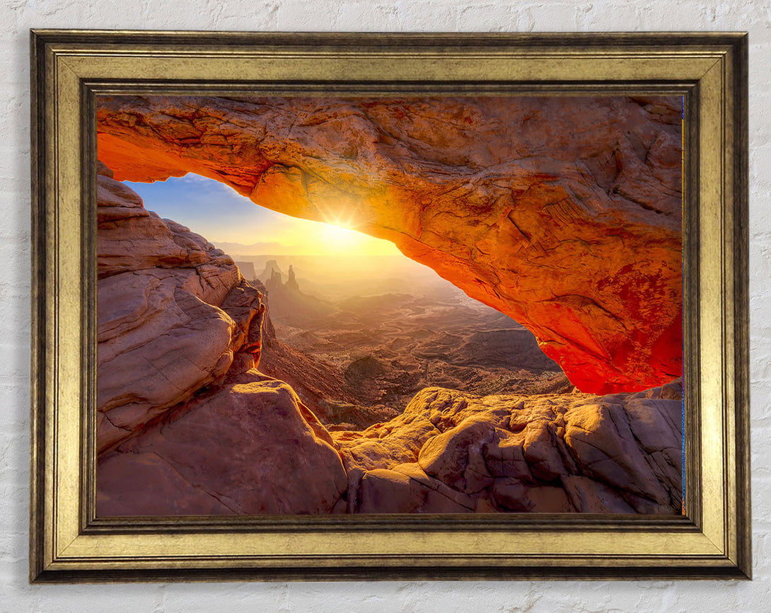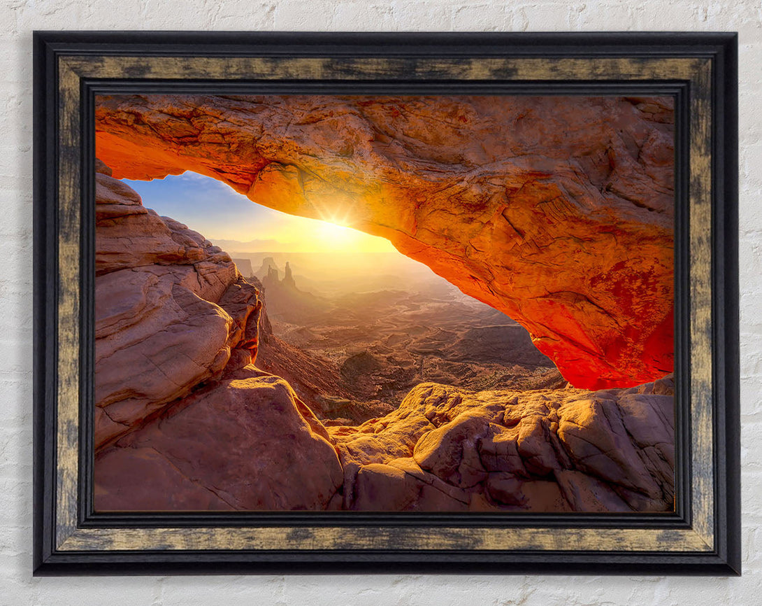 Sun Burst Through The Red Rock Canyon Framed Print