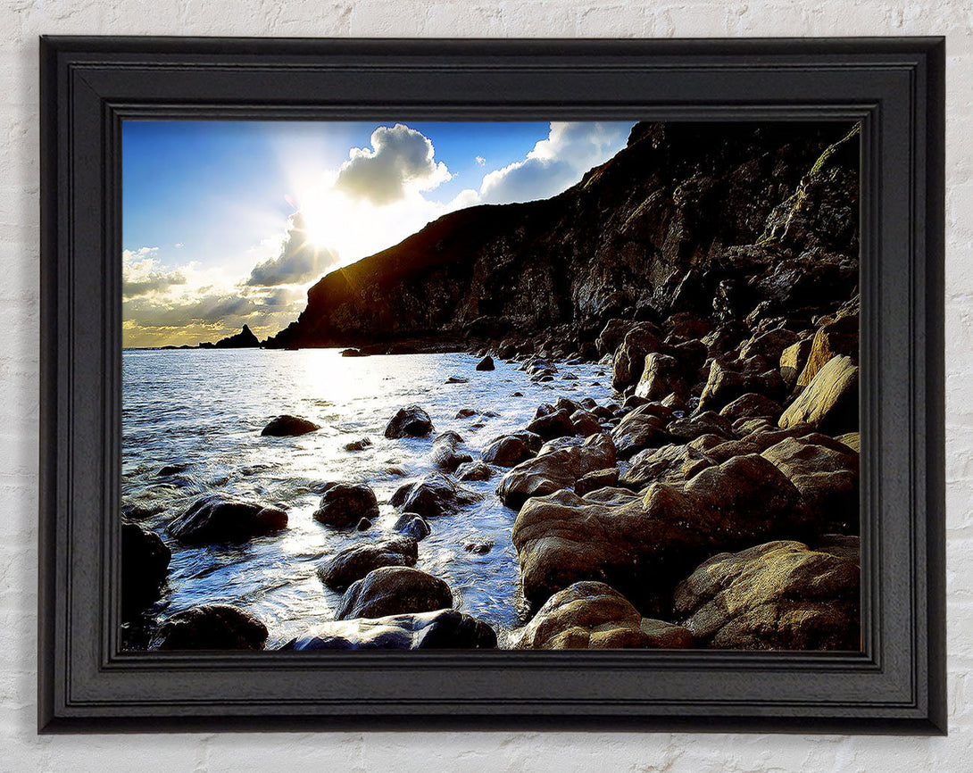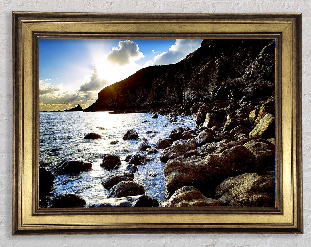 Sun Kissed Ocean Rocks Framed Print