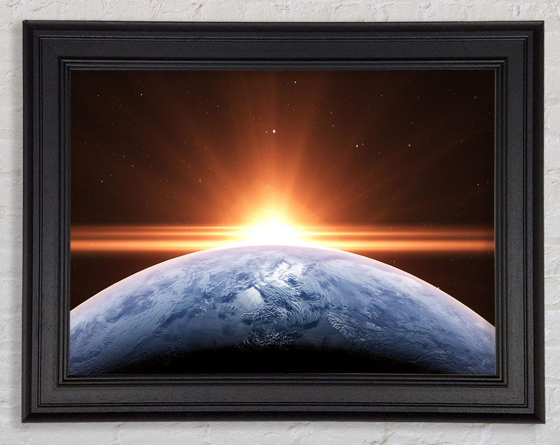 Sun peering over the earth Framed Print