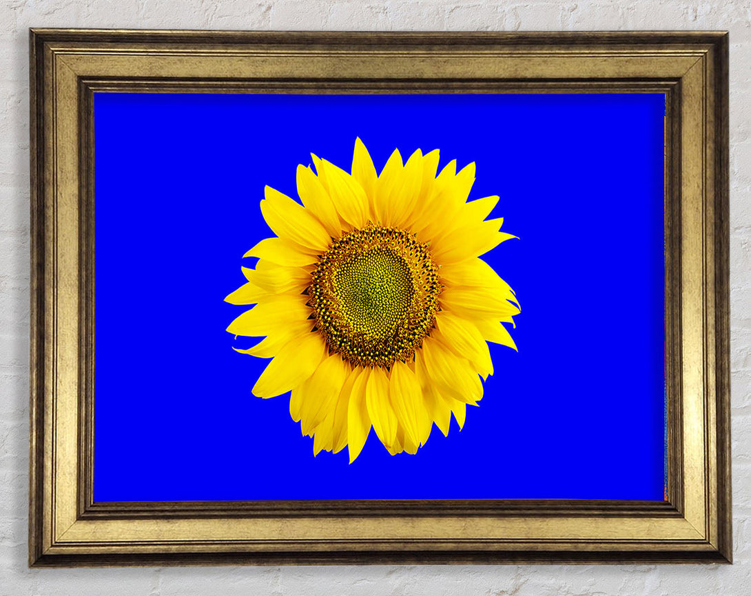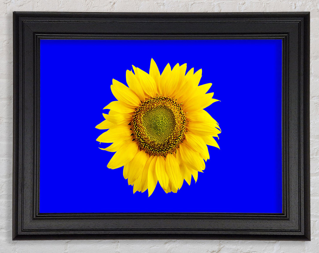 Sunflower Head On Blue Framed Print