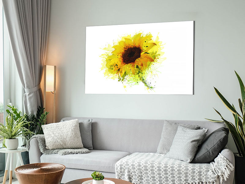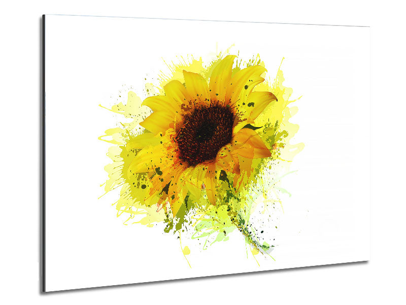Sunflower Splash 1 Printed on brushed aluminium dibond. A modern way to display art and easy to maintain.