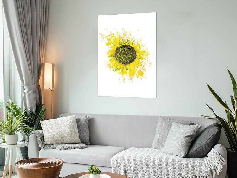 Sunflower Splash 2 Printed on brushed aluminium dibond. A modern way to display art and easy to maintain.