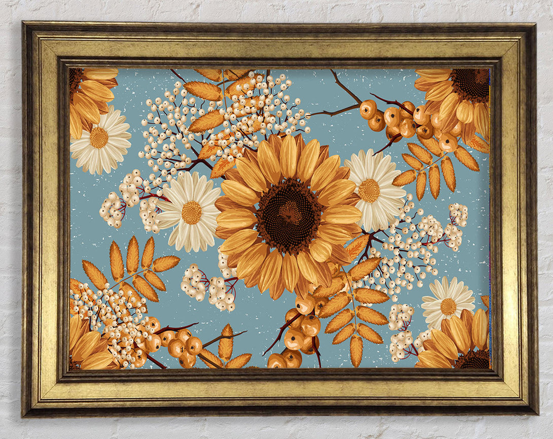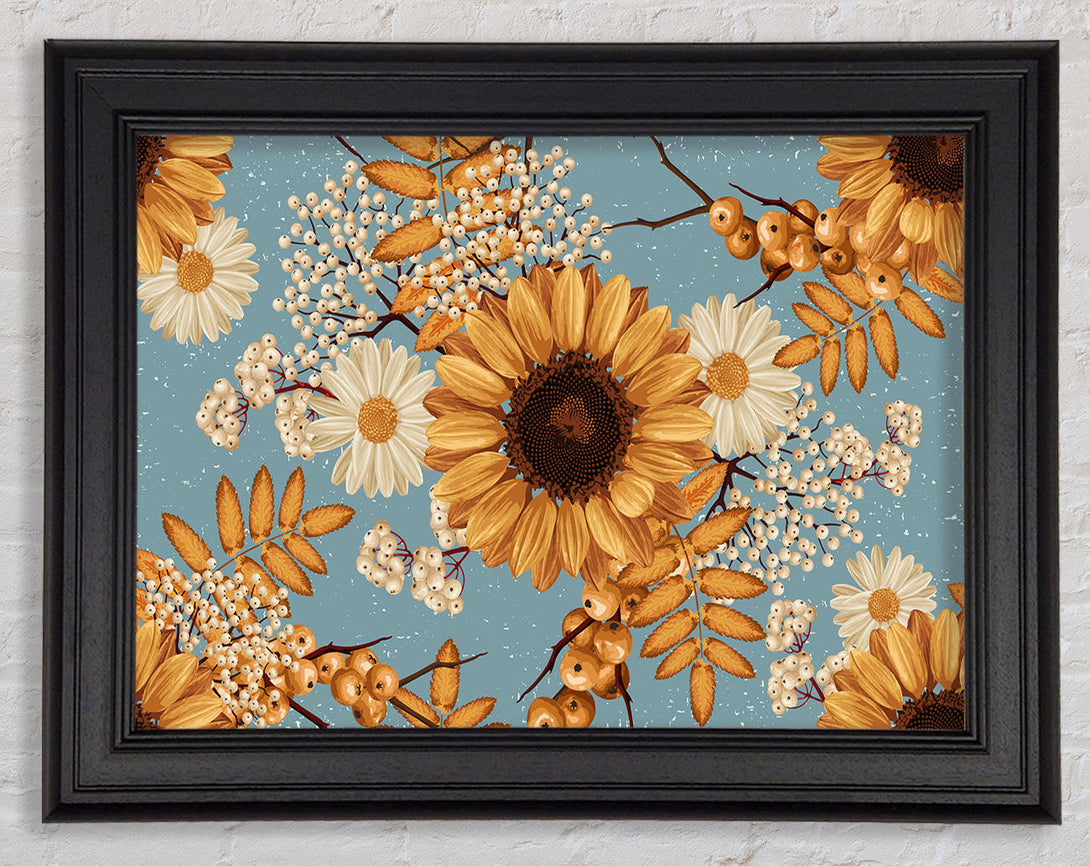 Sunflowers On Blue Framed Print