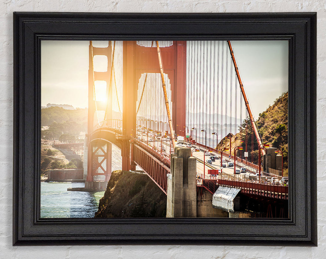 Sunrise Glow Over The Golden Gate Bridge Framed Print