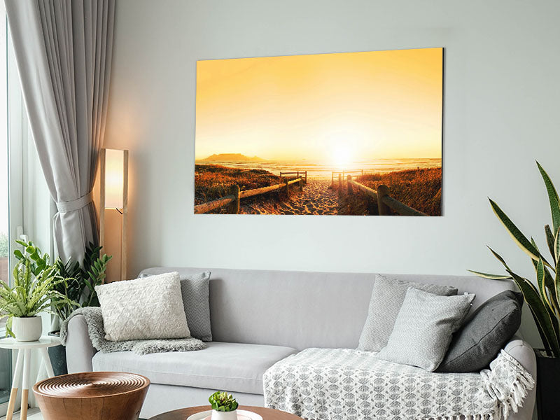 Sunrise walk To The Ocean Printed on brushed aluminium dibond. A modern way to display art and easy to maintain.