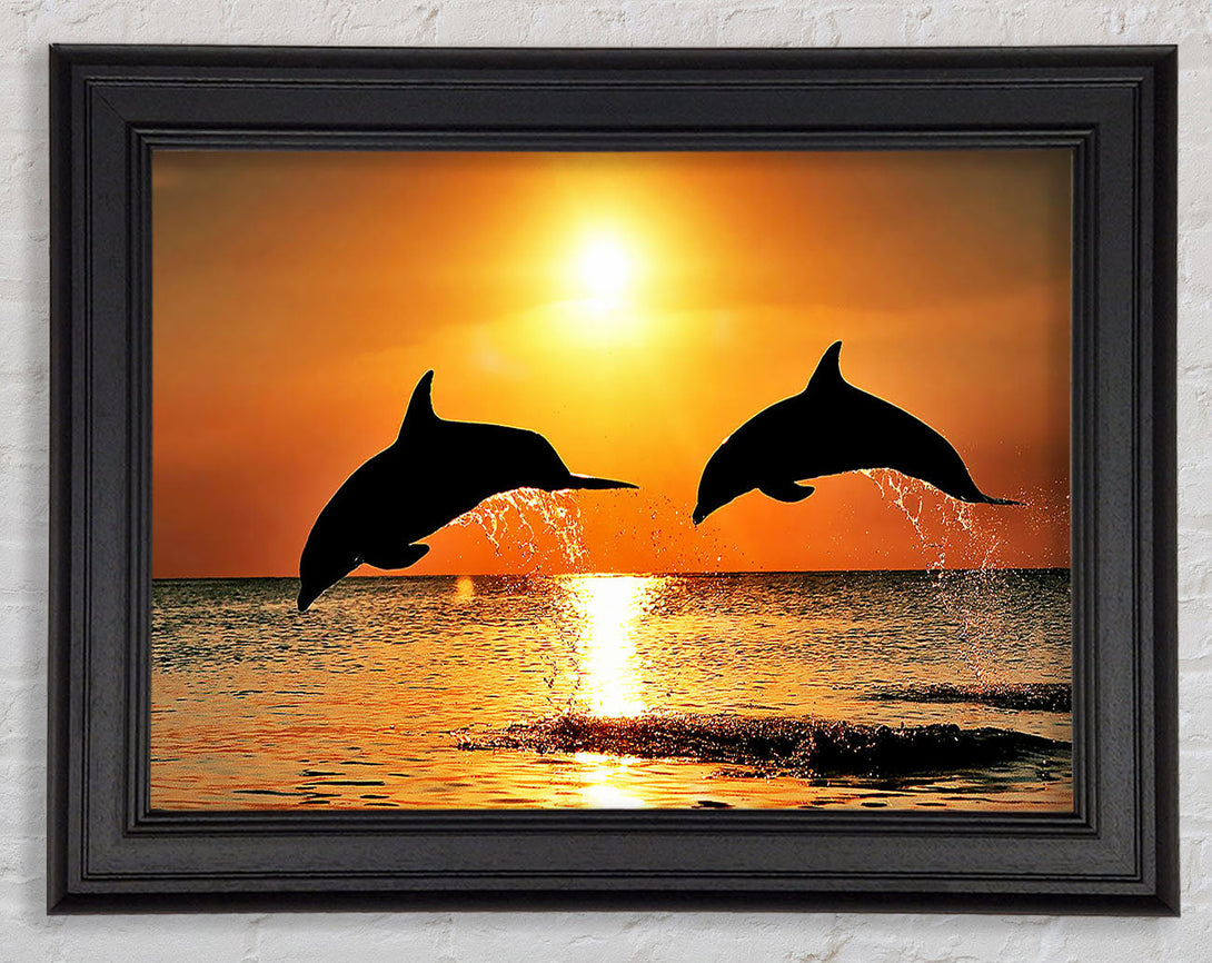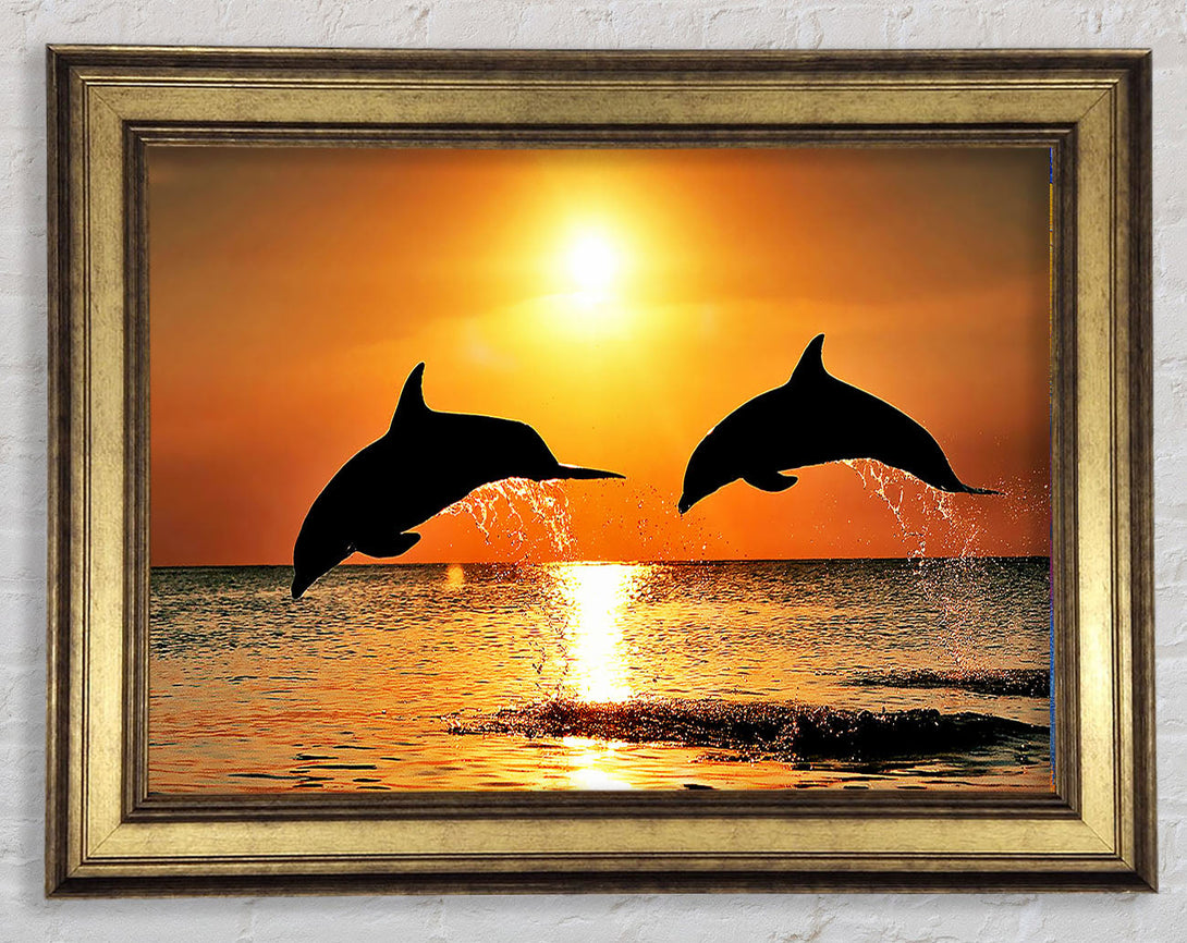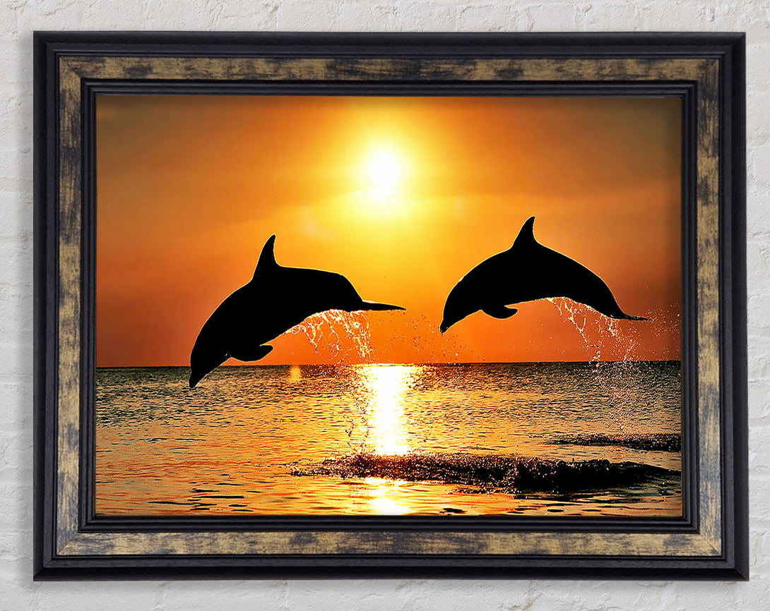 Sunset Dolphins Framed Print