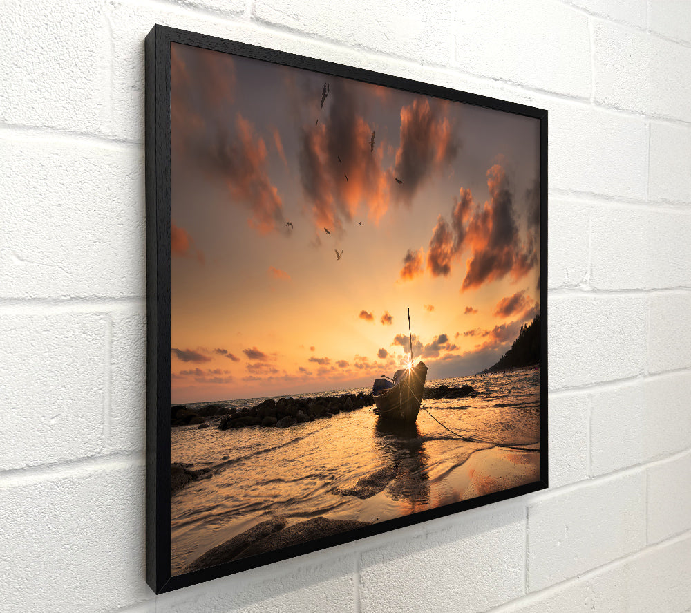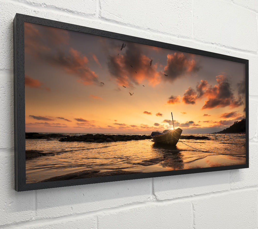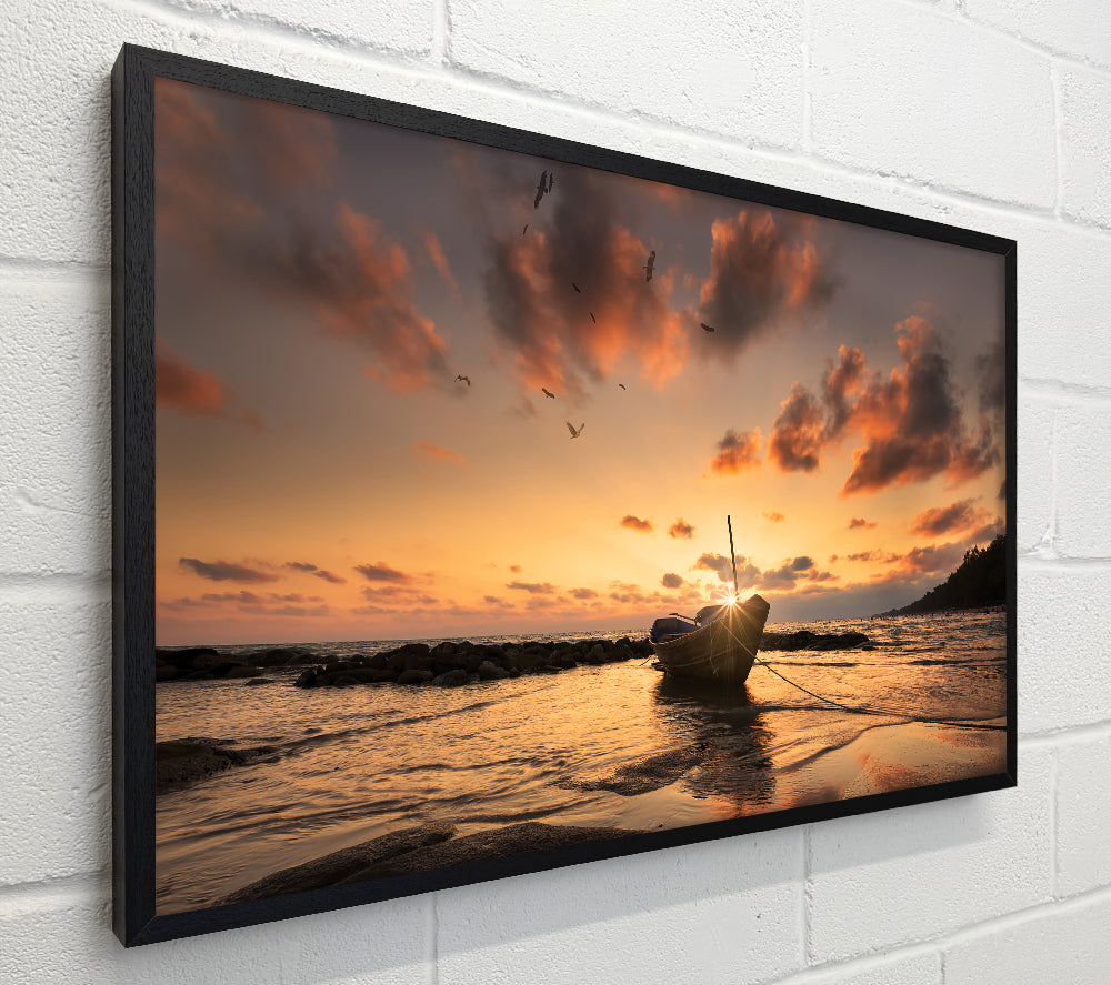 Sunset finishing boat on the beach