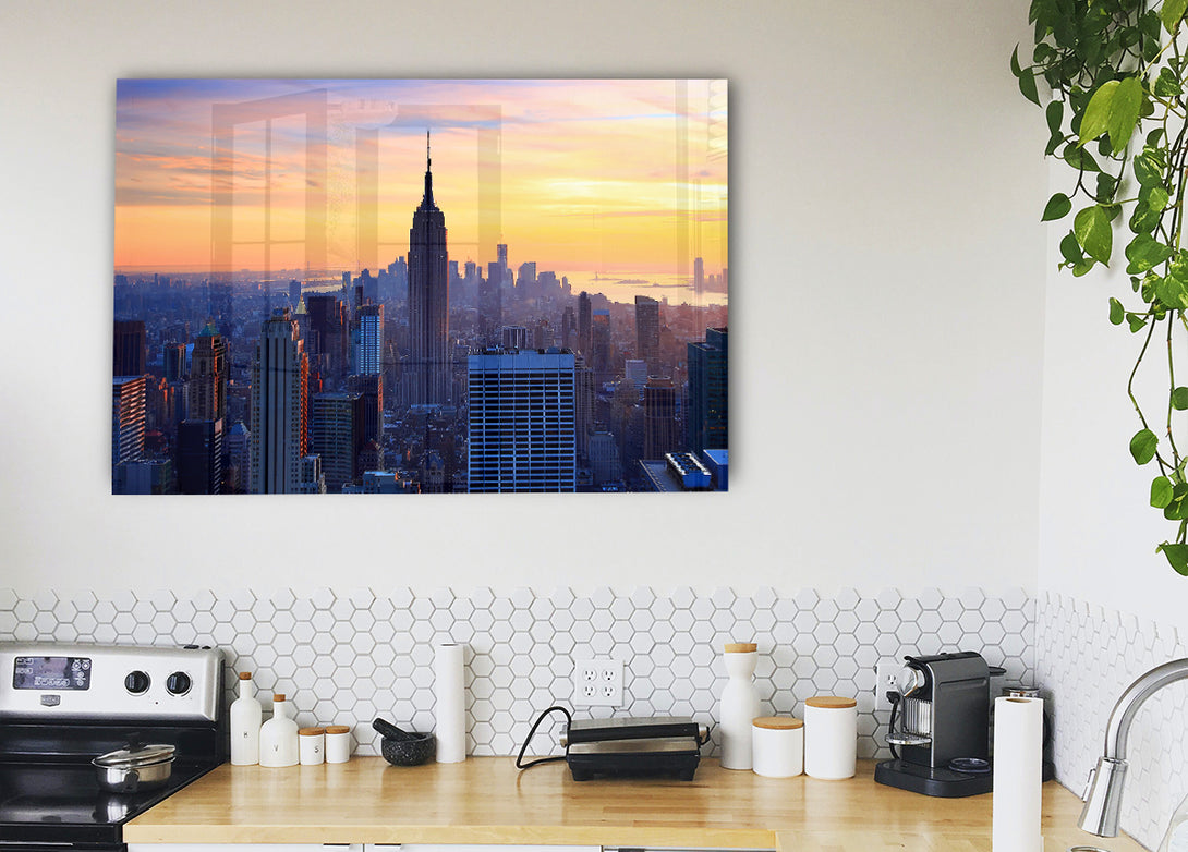 Sunset Over The Empire State Building acrylic print, UV printed onto 5mm thick acrylic glass. Comes with everything you need to hang on your wall.