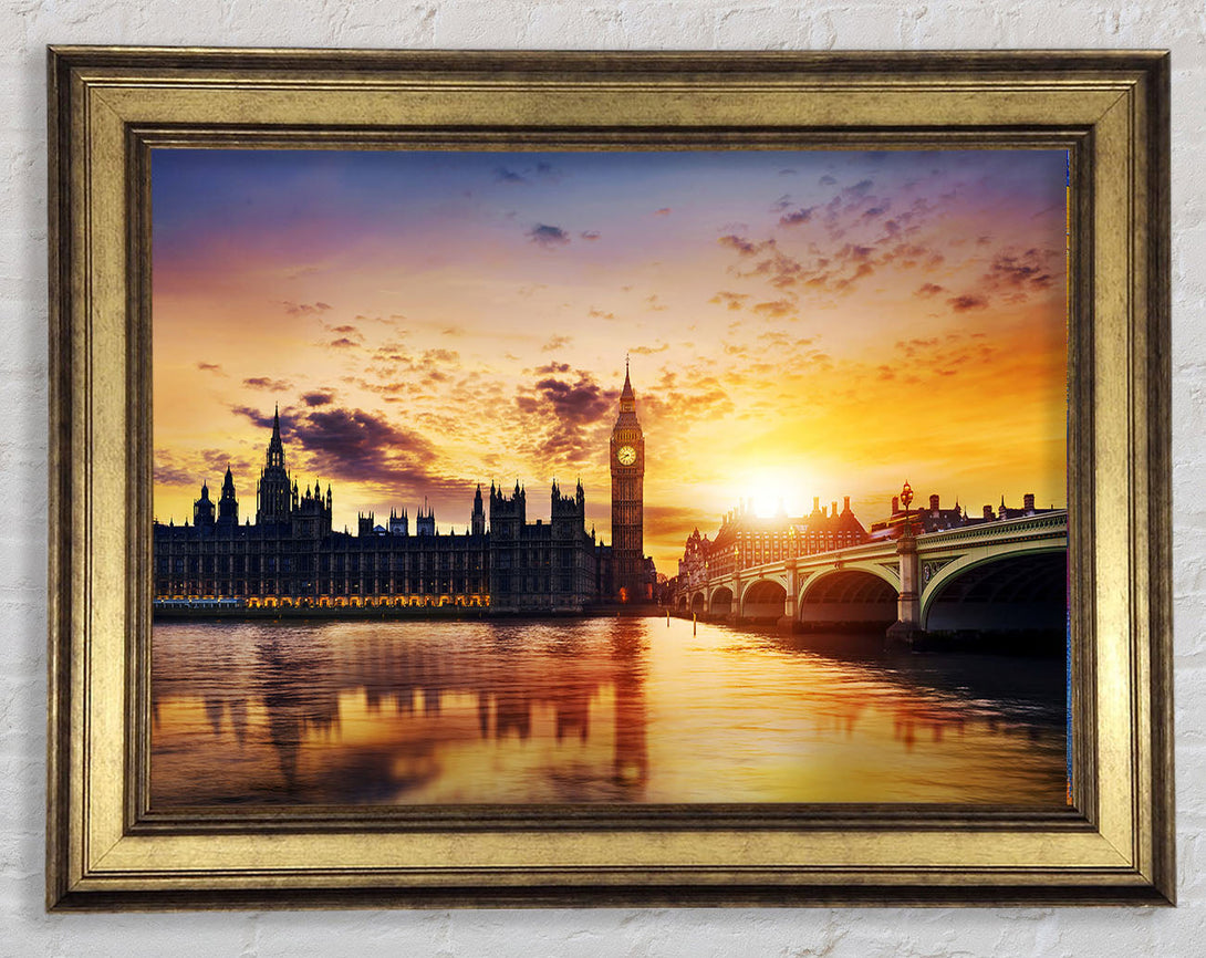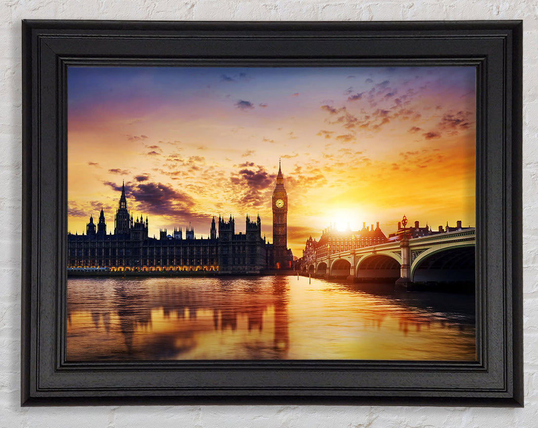 Sunset Over The Houses Of Parliament Framed Print